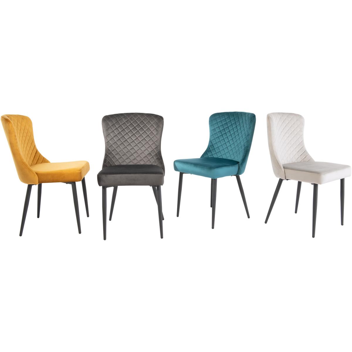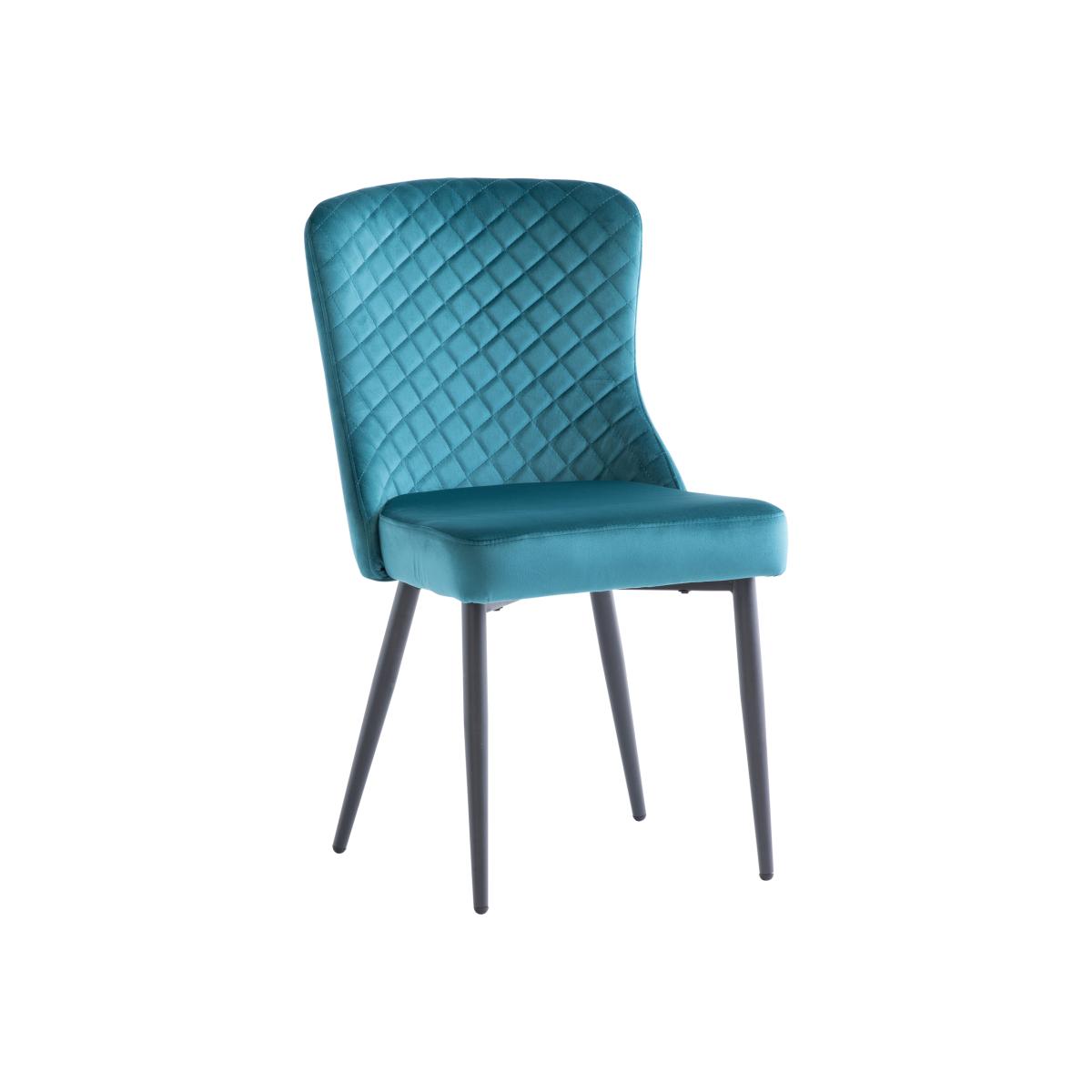 Sheer opulence in this stunningly luxurious quilted back chair. Exquisitely tailored in a choice of four velvet colours and finished with black powder-coated legs. They are delivered flat packed with required assembly.