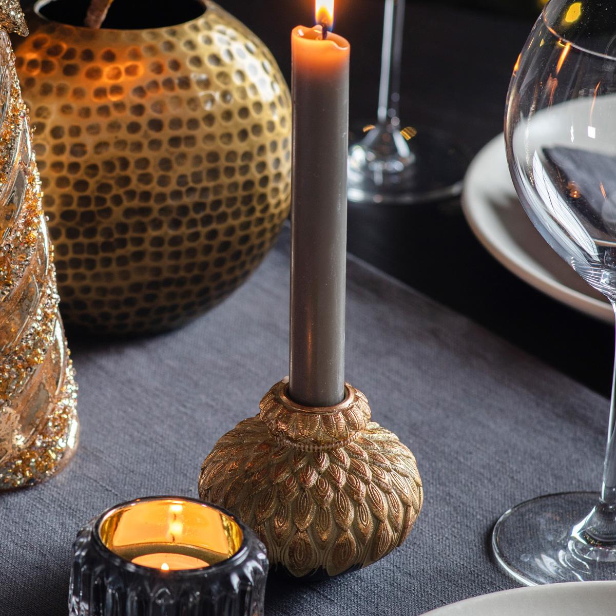 The small Peacock Quill Candle Holder is a striking piece that adds a touch of luxe to both contemporary and traditional interiors. I love its rich, textured gold finish which works beautifully in a variety of colour schemes - from muted neutrals to bold, vibrant palettes. It’s perfect for creating focal points on side tables, mantels, or as part of a centrepiece arrangement. Practical styling tips include pairing it with matte black accents or layered with other textured items to heighten its opulence. Keep in mind its size when placing it - it works best as a standout piece rather than something that gets lost amongst larger accessories. Its compact form also makes it versatile for smaller tables, shelves, or even a well-styled bedside table.