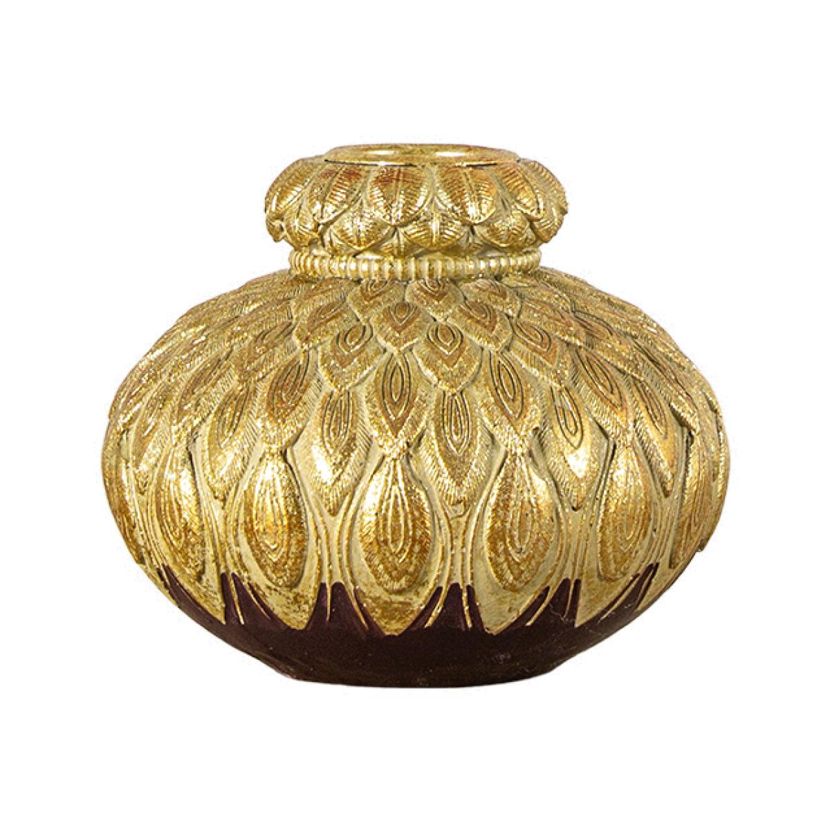 Inspired by the most glamorous of birds. What better inspiration could you get then the resplendent feathers of a peacocks tail. The feather detail of the candle holder is picked out in stunning gold which contrasts strikingly with the black underside.