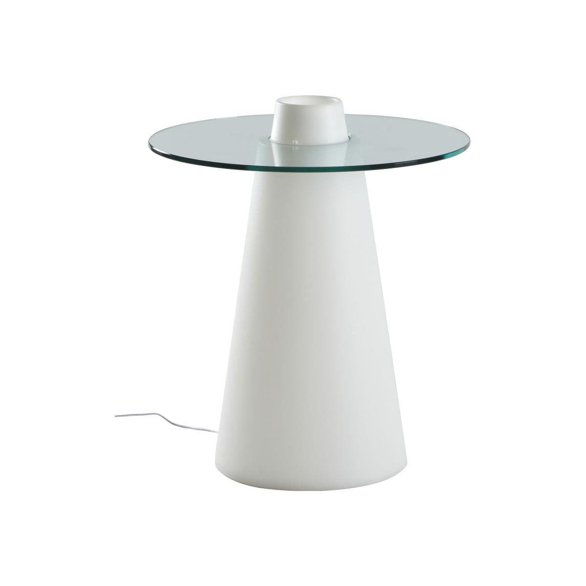 WithPeak,SLIDEintroduces an eccentric bar table created by designers. Aksu and Suardi. A cone-shaped, extremely linear high table featuring a round glass top and a bottle holder for the most momentous occasions.