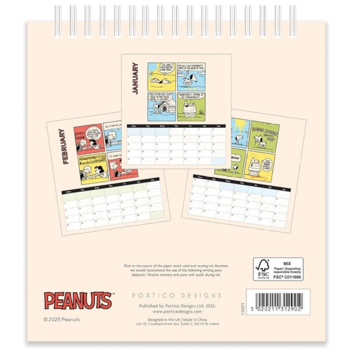 * Official Peanuts artwork with Snoopy, Charlie Brown and friends * Month-by-month layout with space for notes and reminders * Bright, full-colour illustrations for every month * Sturdy fold-out stand for secure desk display Bring a touch of nostalgia to your desk with the Peanuts 2026 Desk Calendar. Featuring Snoopy, Charlie Brown and the gang, each month reveals a colourful new illustration alongside a clear date grid for notes and reminders. Compact and practical, it sits neatly on any desk without taking up space, making it perfect for home or office. The sturdy stand keeps it upright all year, while the vibrant prints add a cheerful twist to your planning. Ideal for fans of all ages, it’s a fun way to stay organised from January through December.