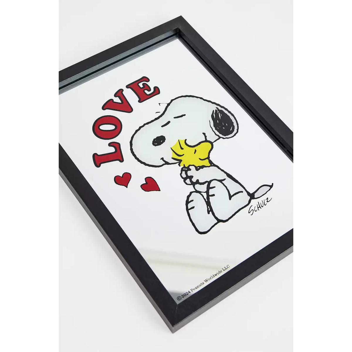 Heartwarming framed mirror from Peanuts with a screen-printed graphic of Snoopy and Woodstock hugging. Complete with a hook for hanging. **Features** \- Framed \- Screen printed Snoopy graphic **Content + Care** \- Framed mirror \- Wipe clean **Size** \- 31.5cm x 23cm