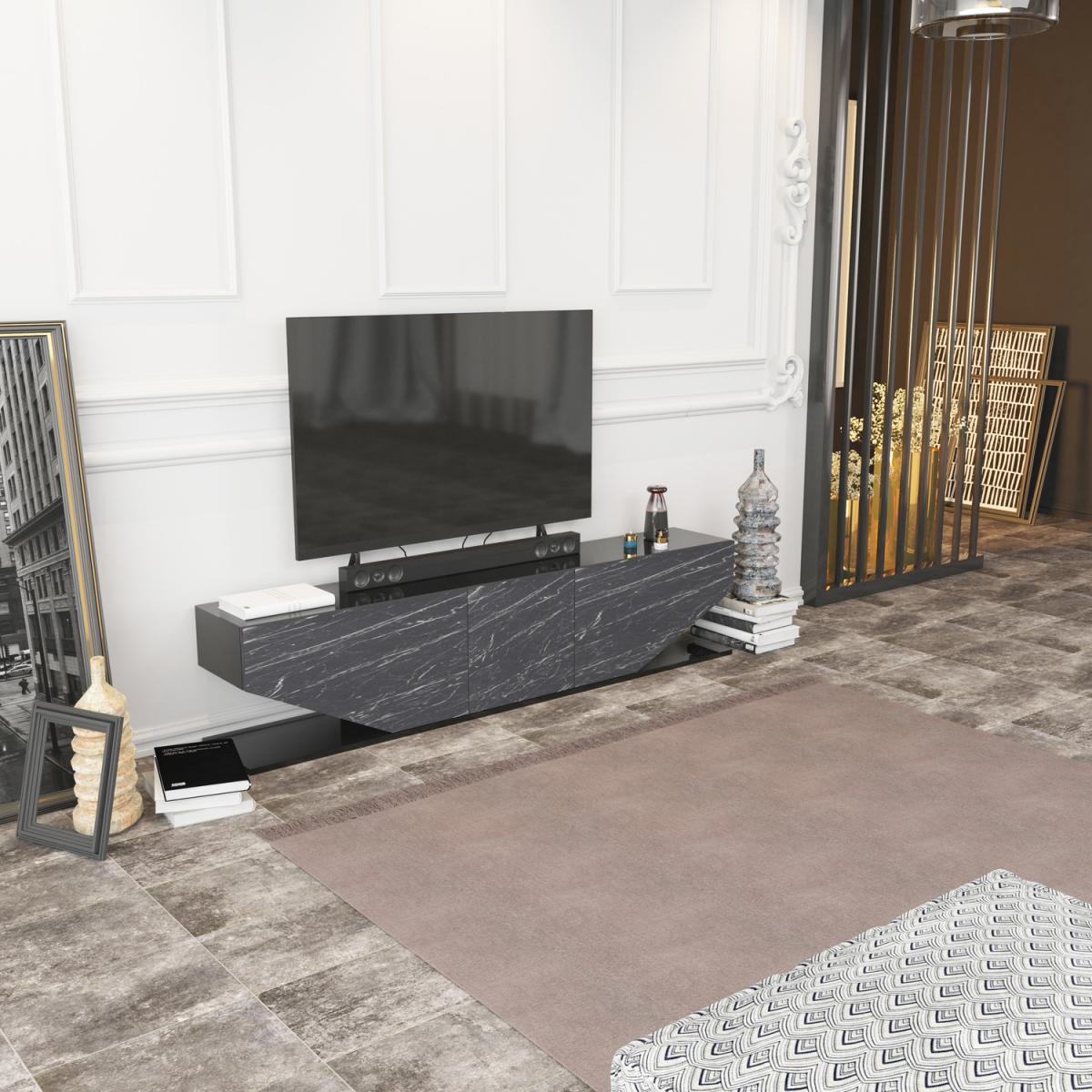 Pearl 180 cm Wide TV Stand and Media Console - Black Marble Effect