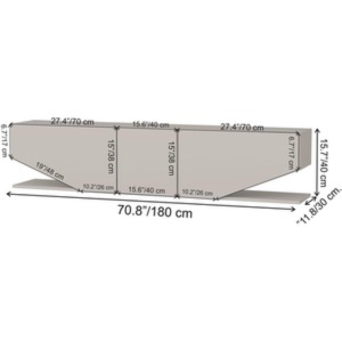 The attractive design and glossy white colour makes the Pearl 180 cm wide TV stand and media console unique. The TV cabinet can accommodate flat-screen TVs up to 75''. Birdwing-style cabinet doors will add an artistic look to your room. It is large enough to store your belongings with its 3 cabinets and 2 open shelves. It is made of an 18 mm thick quality melamine coated manufactured wood and banded with PVC edge band. It is manufactured using health-friendly materials.