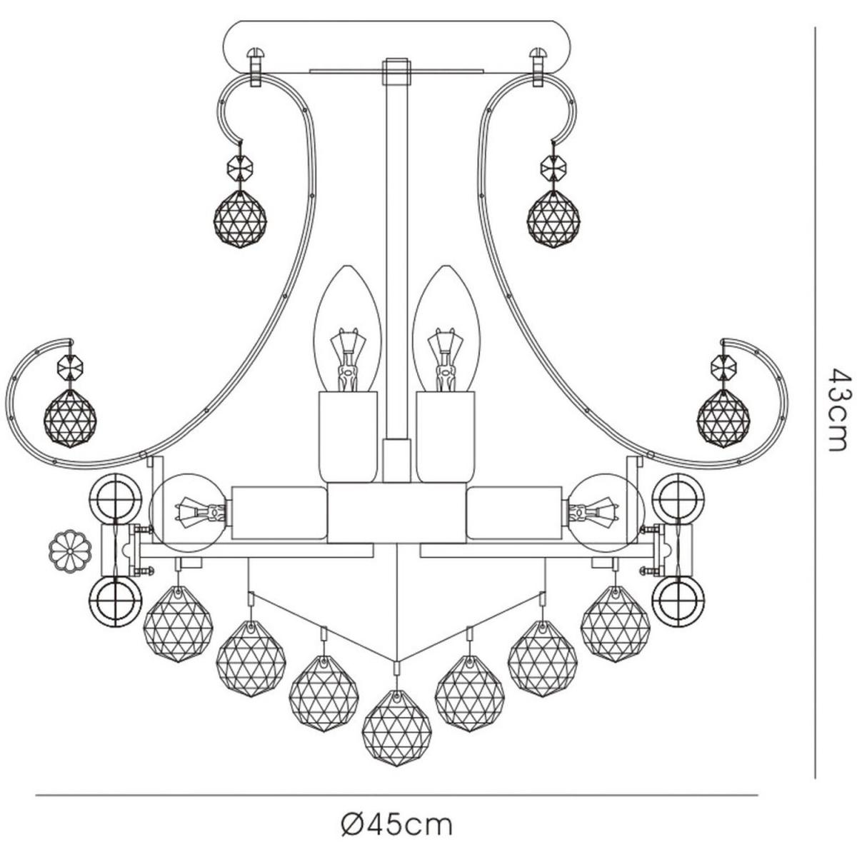 A truly sophisticated Polished Chrome chandelier saturated with Asfour crystal spheres and squares. This individual design is enhanced by the fact the items are semi flush which is rarity for a fixture of this kind. The central body houses pairs of crystal spheres that continuously run around the perimeter. Both sizes in the range are also available in a more traditional French Gold Finish. Complimenting wall lamps are also available from the Atla range.