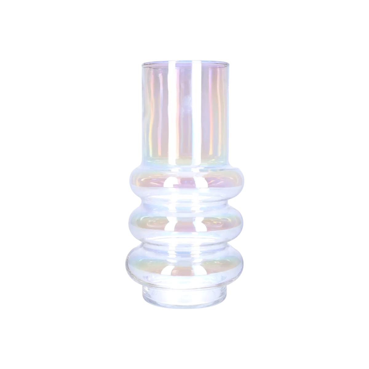 Bring a touch of elegance and charm to any room with this Pearlescent Round Glass Vase. Its beautiful pearl finish adds a delicate shimmer to your floral arrangements, making them even more stunning. Elevate your home decor and impress your guests with this gorgeous centerpiece adding a touch of luxury to your space.