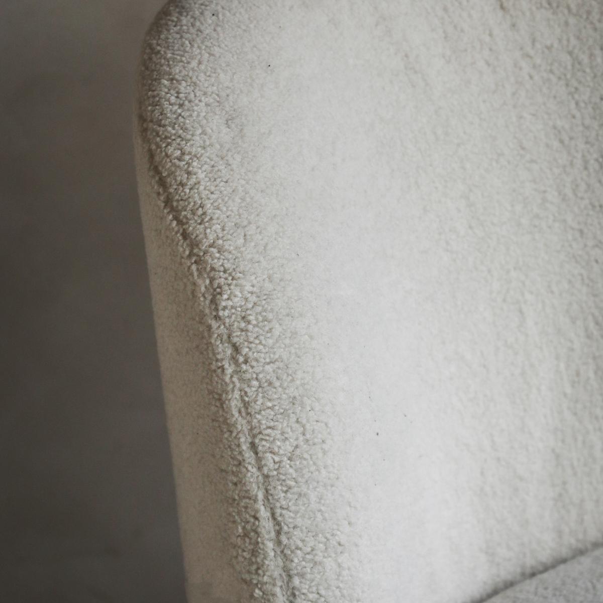 I love the Pebble chair in vanilla for its soft, curved shape and warm neutral tone that lifts a space without dominating it. Its boucle-style upholstery and dark ash legs suit Scandi or modern-minimal schemes as well as softer, nature-inspired rooms. For styling, tuck it into a reading corner beside a slim floor lamp and small side table. Layer in a textured cushion - think muted terracotta or deep fern green - to add contrast and echo natural hues. Anchor the look with a patterned rug beneath and a couple of brass or matte-black accessories on the table to tie everything together.