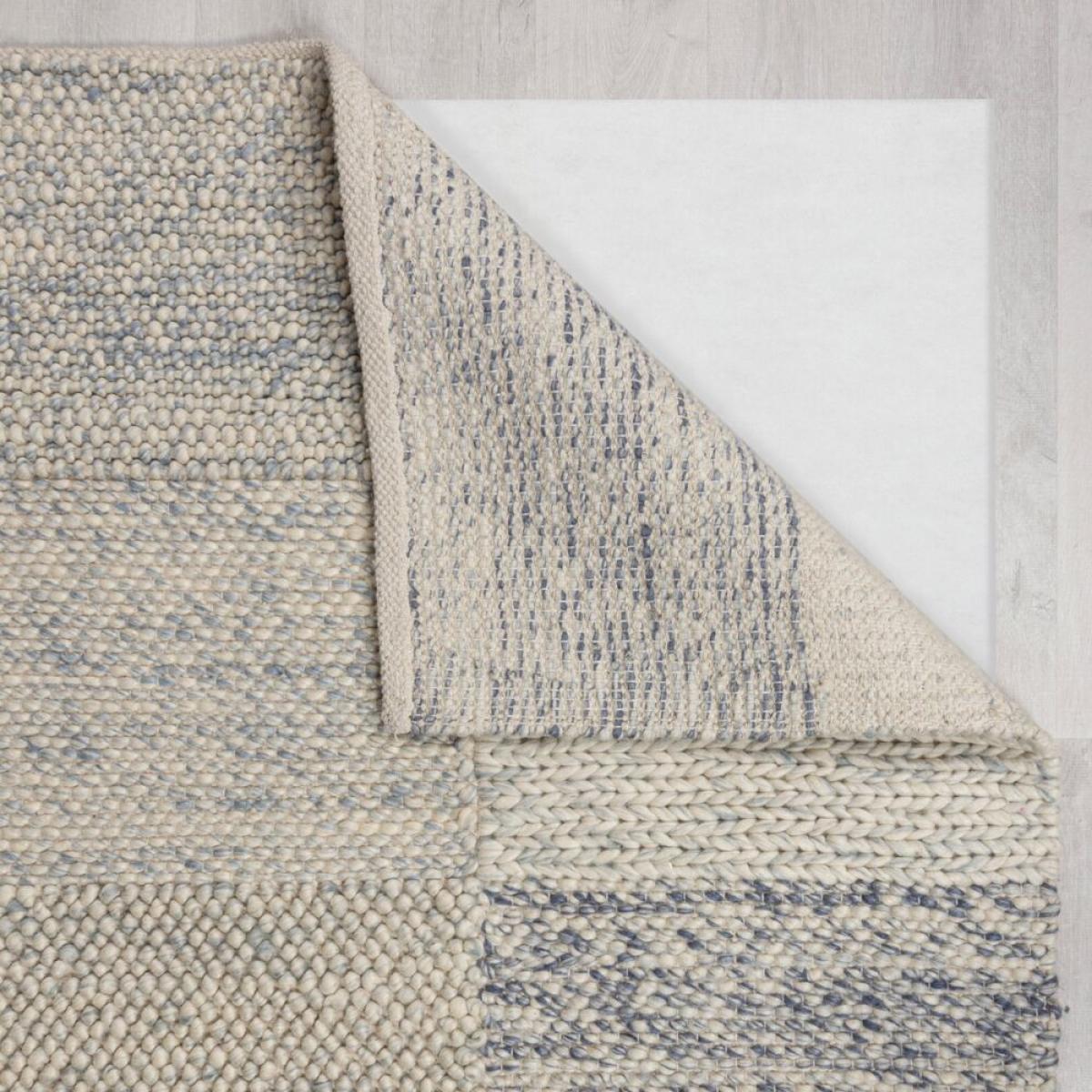 * Made from wool blend* Hand crafted Embrace Natural texture and organic tones in your home with the Pebble Patchwork Rug. Expertly hand crafted in India, this unique wool rug has been woven together with a multitude of techniques. Naturally soft and warming wool has been woven, looped and braided to create a contemporary checkerboard design that’s bursting with soft texture for a subtle statement that guarantees a cosy feeling within your home, this rug will fit perfectly in your most treasured living space. Care:For regular cleaning, we recommend using a suction-type vacuum to ensure that rotating brushes won't damage the wool pile. In the case of an accidental spillage, blot with a clean and dry cloth. Due to the woollen composition a small amount of fibre loss is normal, but simply trim loose fibres with household scissors. To keep your rug looking fresh and even rotate regularly to balance out wear. To be safe, keep away from fires such as lit candles and don't leave children and babies unsupervised on this rug. Care Instructions:When opening, re-roll your rug pile out and leave in a warm room for 24 hours before putting in place, this will help to reduce wrinkles and curling from packing. Do not pull any loose threads, please cut them carefully with scissors to remove. Avoid prolonged exposure to direct sunlight as this may cause fading of the colour. Turn your rug regularly to ensure even wear and to reduce pressure marks from furniture. Wool fibres may shed when new and during use, this is a characteristic of this product and is not a defect and should reduce with normal use and regular vacuuming. Before using any cleaning products on your rug, test on an inconspicuous area first to ensure it does not affect the colour. Clean spills immediately by blotting with a clean dry white cloth - do not rub as this may stain the fibres. Vacuum your rug regularly to remove everyday dirt, we recommend the use of a suction type vacuum cleaner as a rotating vacuum brush can cause damage to the pile surface. We recommend the use of an anti-slip mat beneath your rug to prevent it from slipping and sliding out of place. Latex is used on the back of this rug. Please do not leave babies or young children unsupervised on this rug.