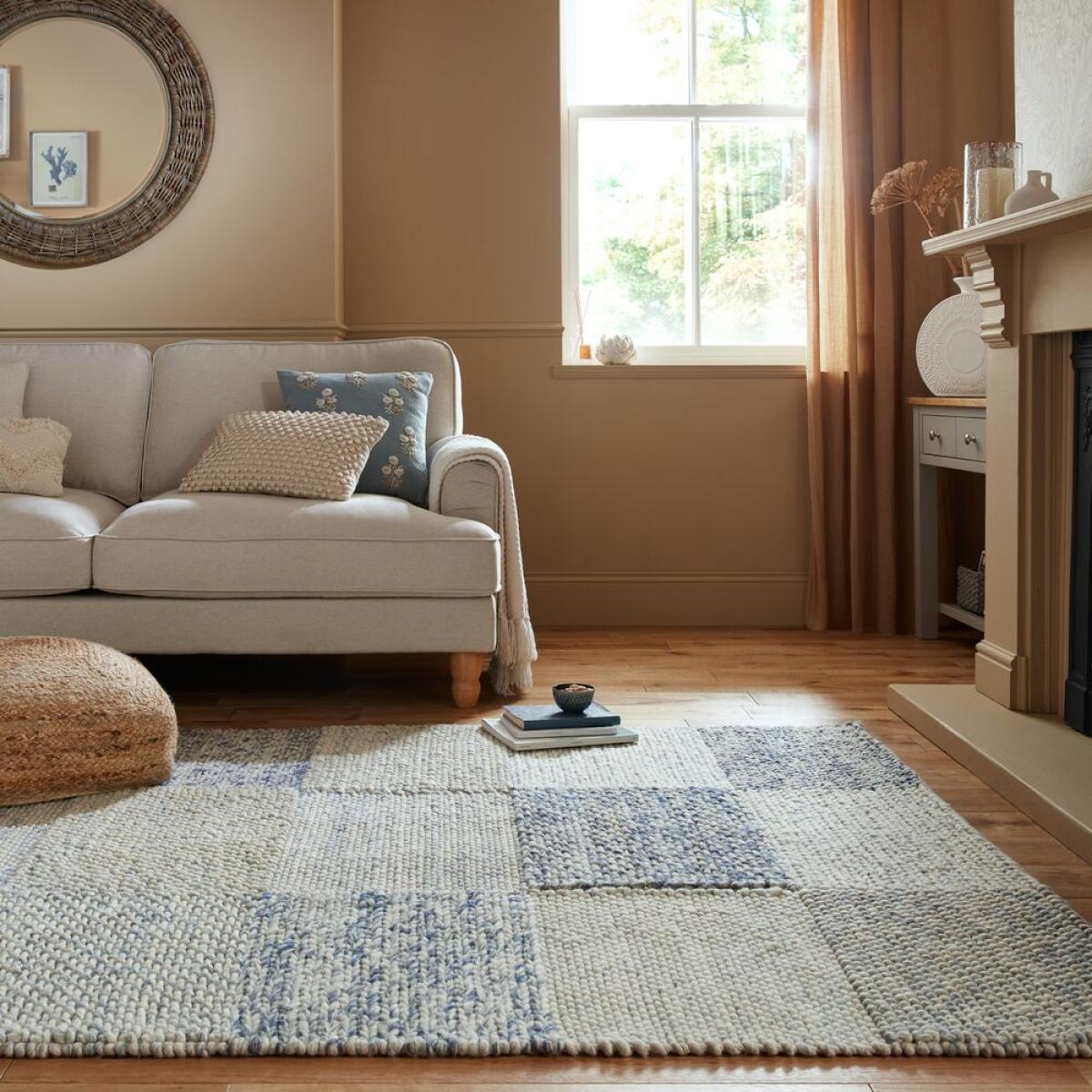 The Pebble Patchwork Rug Ashley Blue offers a versatile and contemporary addition to many interiors, especially those with a neutral or muted colour palette. I love it because the subtle patchwork design adds visual interest without overwhelming a space, making it ideal for open-plan living or cosy corners alike. It works well in both modern and vintage-inspired interiors - think layered textures in a Scandinavian scheme or paired with antique or rustic furniture for added warmth. Practical styling tips include layering it over a plain, neutral carpet for added dimension or using it as a statement piece in front of a sofa or fireplace. Its durable, textured finish makes it suitable for everyday living, while the calming blue tones bring a sense of tranquillity to the room.
