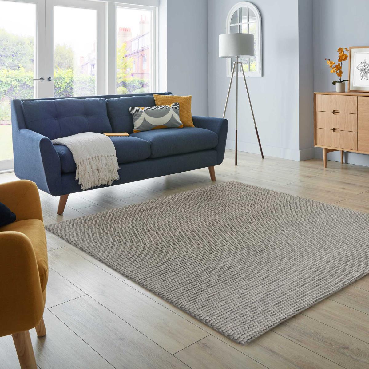 Enhance your home decor this stunning Pebble rug features a unique texture that creates an interesting 3D appearance. This beautiful rug has been designed by skilled craftsmen to provide instant warmth to any living space and can even improve sound insulation for a quieter room. Also available in a range of sizes and colours. Available in a range of sizes and colours, use the Pebble rug to soften any space. Unroll and enjoy!. Don't forget to buy our handy anti-slip mat,. Here,. Available in a range of sizes. For regular cleaning, we recommend using a suction-type vacuum to ensure that rotating brushes won't damage the unique pile. In the case of an accidental spillage blot, with a clean and dry cloth. To keep your rug looking fresh and even rotate regularly to balance out wear. When you receive your rug, we recommend re-rolling with the shaggy pile facing outwards for 24 hours in a warm room. This will help your rug settle flat with ease. Our Pebble rugs can also be used on heated floors to keep you extra toasty!. To be safe, keep away from fires such as lit candles and don't leave children and babies unsupervised on this rug. Please note: This rug contains Latex. Please note: Young infants should not be left unsupervised on this rug. Please note: Keep away from fire.