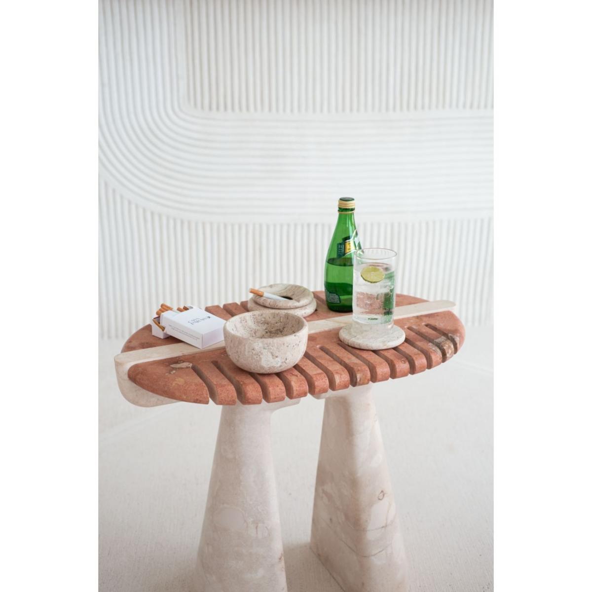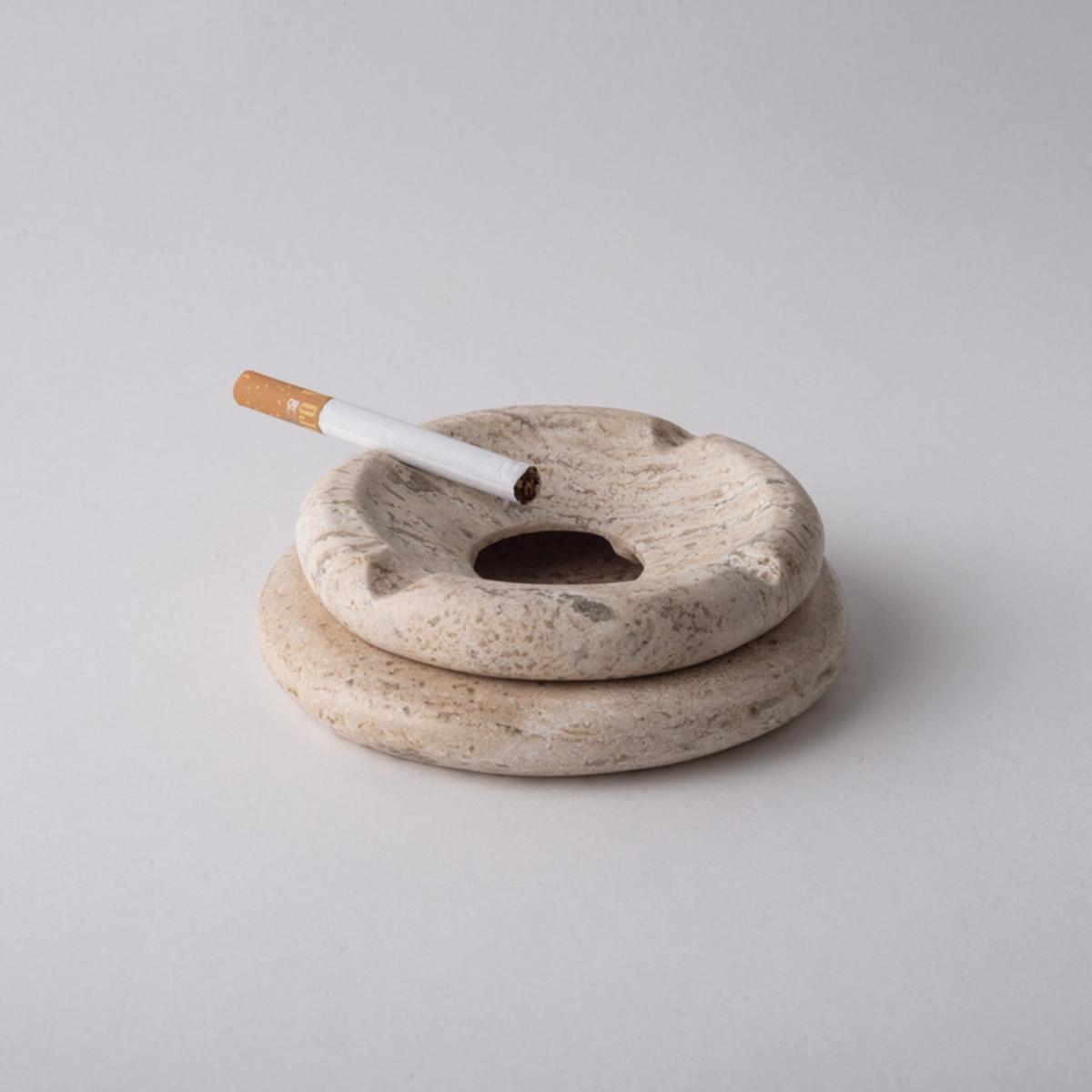 Two-piece ashtray, base and lid hand-carved in marble stone. It belongs to the Pebbles collection, distinguished and inspired by rounded, risky and modern shapes. Unique and beautiful.