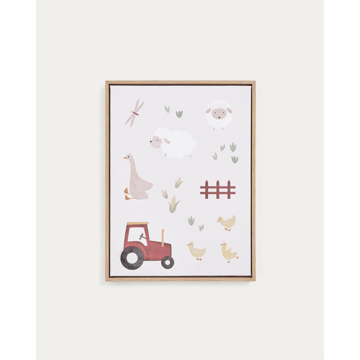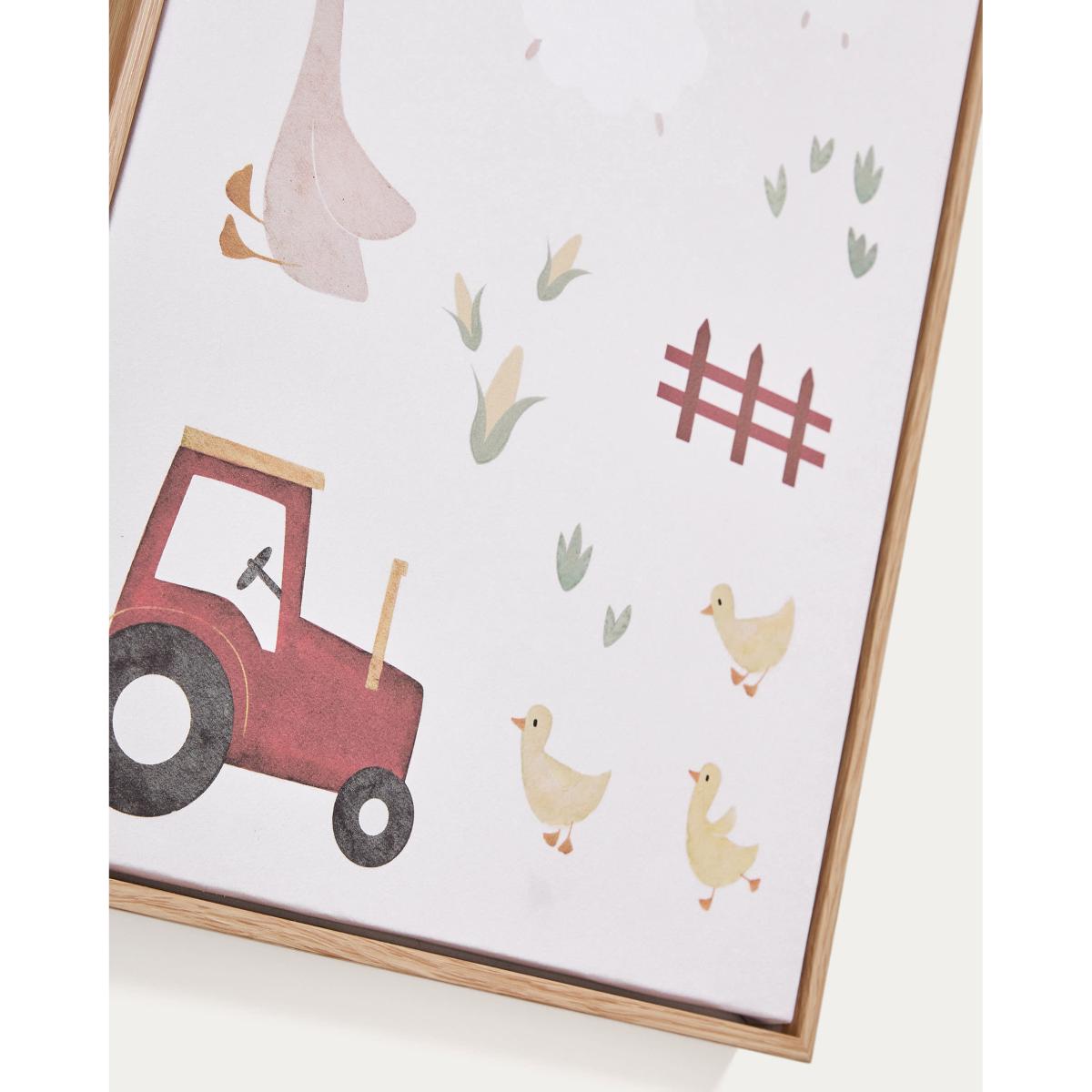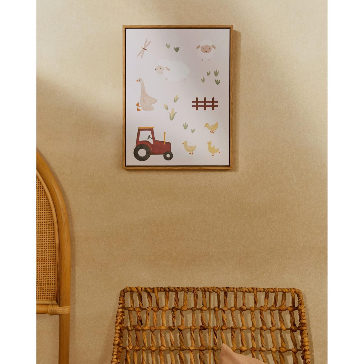 The Pecky multi-coloured picture of animals and a tractor is a charming choice for adding a touch of whimsy to a child's room or a casual family space. Its playful illustrations and vibrant yet muted colour palette make it versatile, working well in both modern and rustic interiors. I love how it can bring a cheerful focal point without overwhelming the space. For styling, try pairing it with natural wood or neutral-toned furnishings to let the artwork stand out; it also works well hung above a bunk bed or a play corner. Practical tips include framing it with a simple border or displaying it as part of a gallery wall with other light-hearted prints for a personalised touch.