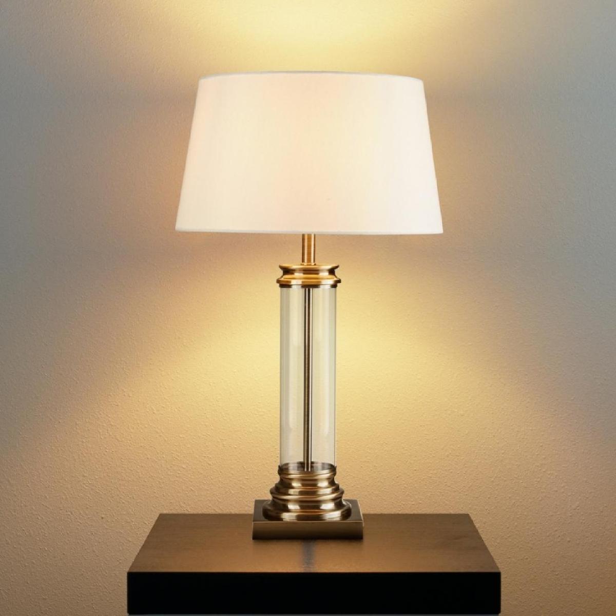 Stunning traditional antique brass table lamp with a clear glass column The Pedestalantique brass table lamp is a perfect fit for any room with traditional decor, with the brass features and clear glass column, it will fit in any room and become an eye-catching feature of the home. With its minimalistic cream shade, the pedestal lamp is the perfect addition to a home that would benefit from a warm glow and added style. Style this light with one of our vast selection of LED E27 light bulbs Stunning traditional antique brass table lamp with a clear glass column The Pedestalantique brass table lamp is a perfect fit for any room with traditional decor, with the brass features and clear glass column, it will fit in any room and become an eye-catching feature of the home. With its minimalistic cream shade, the pedestal lamp is the perfect addition to a home that would benefit from a warm glow and added style. Style this light with one of our vast selection of LED E27 light bulbs