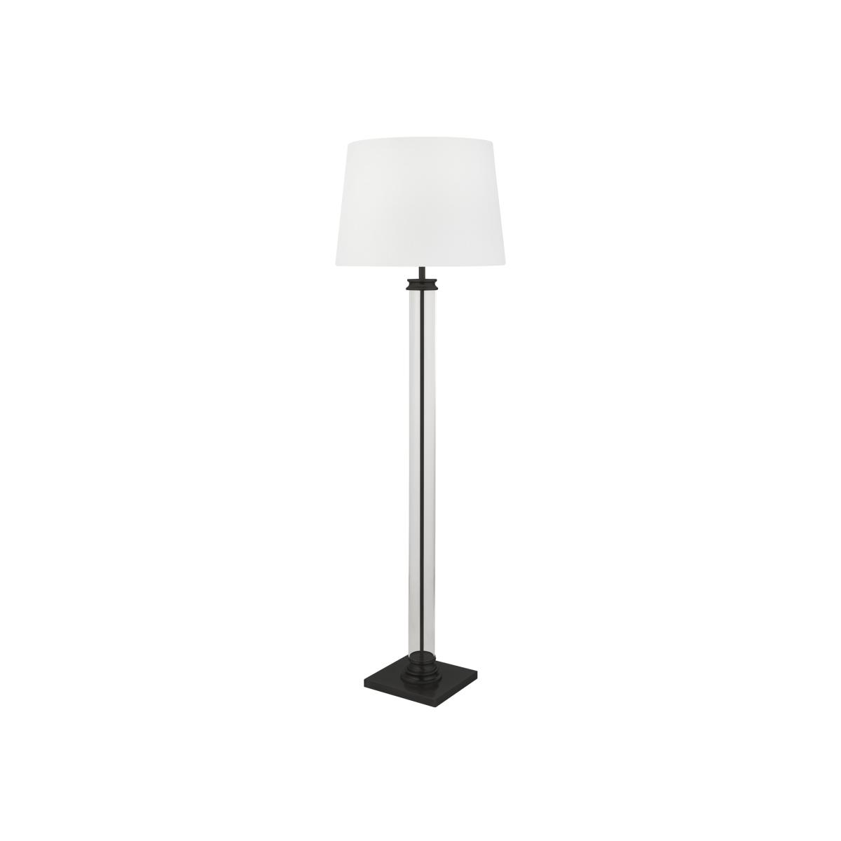 This monochrome Pedestal floor lamp would add a stylish touch to both contemporary and more traditional homes The clear glass body encases a black metal stand which sits on a black base, adding a sleek look to any home. The white shade makes Pedestal a sleek addition to any living or bedroom.