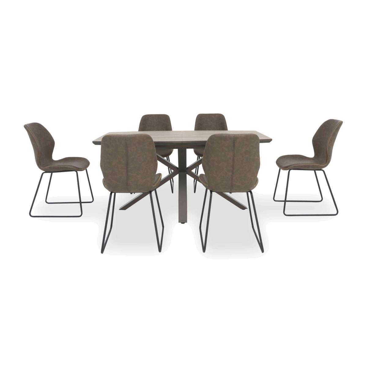 The Pedro range of dining sets, dining room furniture and living room tables gets everything right. You’ll find high-quality craftsmanship at a great-value price, as well as superb contemporary style that’s also easy to care for and very hardwearing. Statement details – like innovative table extension mechanisms, bold metal table bases and swivel dining chairs – have ergonomic and practical purposes, like saving space in a smaller dining room. And you’ll also enjoy plenty of choice when it comes to dining table styles and sizes alongside the convenience of ready-made dining sets. Online only at Furniture Village. If you like your furniture striking and contemporary, then you’ll love this dining set. The extending dining table, which seats eight, has bold lines and a hardwearing finish, and the chairs have ski legs. Why you'll love it Relaxed contemporary dining style at an incredible price. Boat-shaped dining table extends to seat 8 – the extra leaf is hidden inside. In an ever-fashionable oak-effect and dark grey metal finish. Striking leg design makes a statement. Hardwearing table top is scratch-resistant, chip-resistant and heat-resistant. Ideal for everyday dining as it’s so easy to clean. This stylish dining set includes 6 ski leg dining chairs. Stylish curved and cushioned seats are exceptionally comfortable. Soft faux leather upholstery in a choice of colours. Online only – you won’t find this dining set in our stores. This extending dining set is part of the Pedro range. What you need to know Dining chairs have metal frames and legs and foam cushioning. Dining table seats 6 closed and extends to seat 8. Please note that the table top is not 100% heatproof. We recommend using coasters and placemats at all times. Explore the Pedro range for a huge choice of stylish furniture for living and dining.
