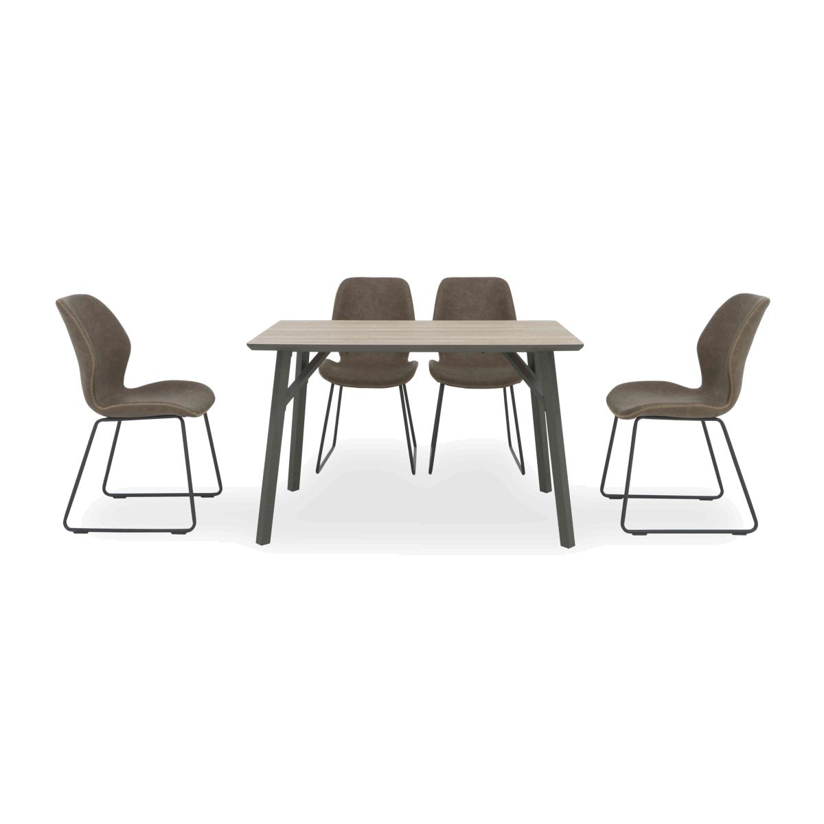 The Pedro range of dining sets, dining room furniture and living room tables gets everything right. You’ll find high-quality craftsmanship at a great-value price, as well as superb contemporary style that’s also easy to care for and very hardwearing. Statement details – like innovative table extension mechanisms, bold metal table bases and swivel dining chairs – have ergonomic and practical purposes, like saving space in a smaller dining room. And you’ll also enjoy plenty of choice when it comes to dining table styles and sizes alongside the convenience of ready-made dining sets. Online only at Furniture Village. This perfectly proportioned rectangular dining table looks fabulous paired with a set of faux leather ski leg dining chairs. Cool and contemporary dining style at a great price. Why you'll love it Relaxed contemporary dining style at an incredible price. Table top has an ever-fashionable oak-effect finish. Hardwearing surface is scratch-resistant, chip-resistant and heat-resistant. Ideal for everyday dining as it’s so easy to clean. Very striking dark grey metal legs. This stylish dining set includes 4 ski leg dining chairs. Stylish curved and cushioned seats are exceptionally comfortable. Soft faux leather upholstery in a choice of colours. Online only – you won’t find this dining set in our stores. This dining set is part of the Pedro range. What you need to know Dining chairs have metal frames and legs and foam cushioning. Dining table seats 6. Please note that the table top is not 100% heatproof. We recommend using coasters and placemats at all times. Explore the Pedro range for a huge choice of stylish furniture for living and dining.