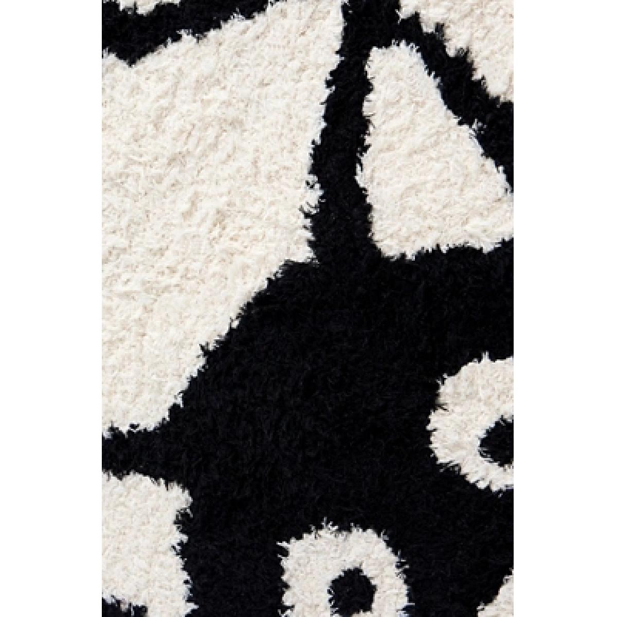 I love this rug because of its playful yet sleek black and white design, making it versatile for various interior styles. It works particularly well in modern, Scandinavian, or eclectic spaces, adding a striking visual element without overwhelming the room. Practical styling tips include placing it in a living room under a coffee table or in an entryway to make an immediate impression. Pair it with minimalist furniture or add textured throws and cushions for a cosy, curated look. Its graphic pattern makes it a great statement piece that can anchor a space, whether on a neutral floor or layered over a larger patterned surface.