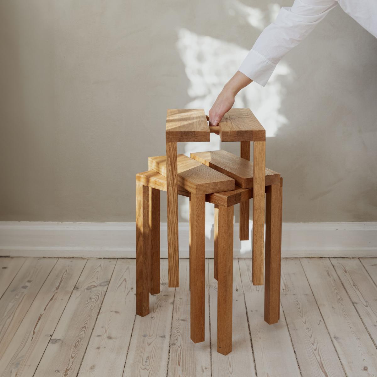 Made in Europe from FSC-certified Solid oak, the Peg collection is built to last. Delivered flat-packed, the Peg Stool is easy to assemble, with no tools required. It is made up of two identical parts - two halves - joined by Wood dowels. The dowels hold the two halves together and create a convenient slot in the middle of the seat that makes it easy to move with just one hand.