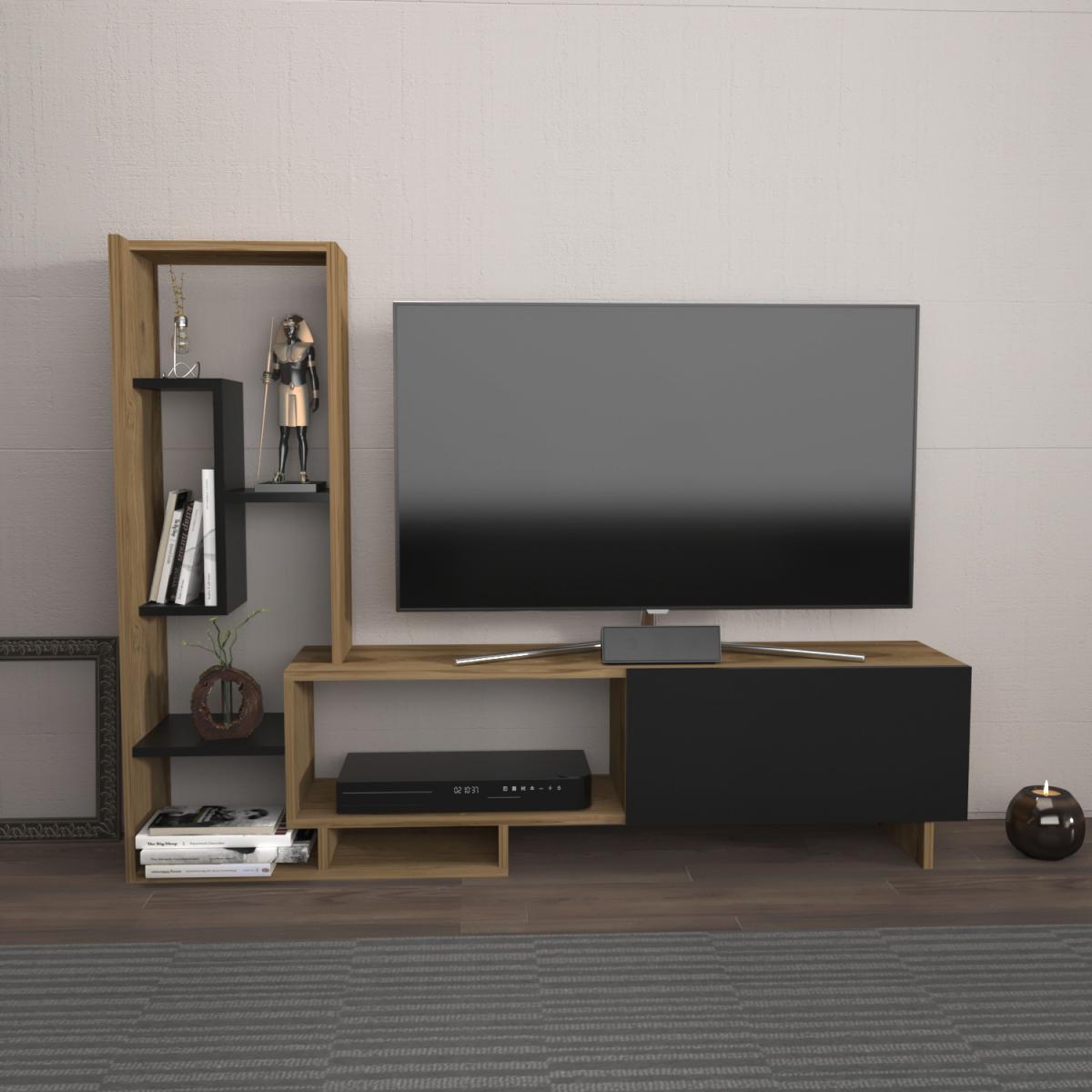 I’m a fan of this Pegai TV unit for its clean lines and mixed-material look: the warm oak-effect finish paired with the matt black door adds a modern edge without feeling cold. It suits contemporary and Scandi-inspired schemes alike, working well against pale walls or deeper accent hues. For styling, keep media kit tucked away to maintain the unit’s streamlined silhouette. Use the open shelving to display a few books, a small plant or a statement object, and balance heavier items on one side with lighter décor on the other. A low-profile soundbar or sculptural vase on top will complete the look without clutter.
