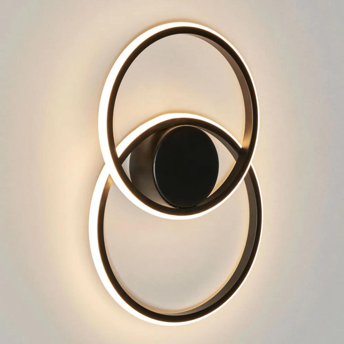 Elevate your wall lighting with the Pei 2 Ring Wall Light in Black. This wall light enhances the aesthetics and ambience of your space, making it an ideal addition to various interiors. While the bold black finish complements the LED-integrated two-ring design, offering a modern and minimalist vibe to any room.