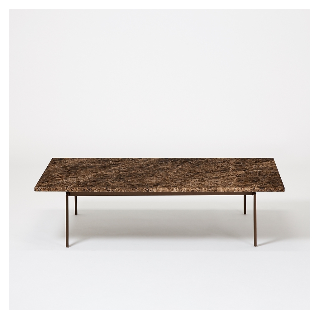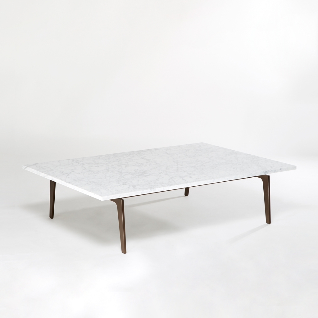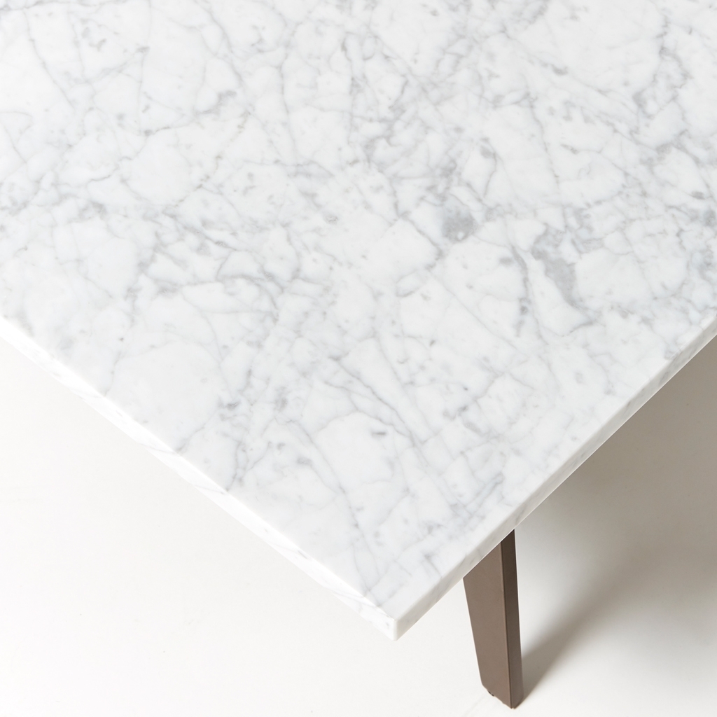 Designed exclusively by Matthew Hilton for The Conran Shop, this Pelham Coffee Table in Arabescato marble is crafted using high-quality materials to make a true design statement. Exquisitely crafted, the Pelham Coffee Table is accented with a uniquely-veined white Arabescato marble surface, sourced in Spain. The statement coffee table is finished with a bronze powder-coated metal base, making it a striking addition to a drawing room or living space. Matthew Hilton is renowned as one of Britain's most esteemed industrial designers and has designed for leading manufacturers across the world over an illustrious career that spans 30 years.