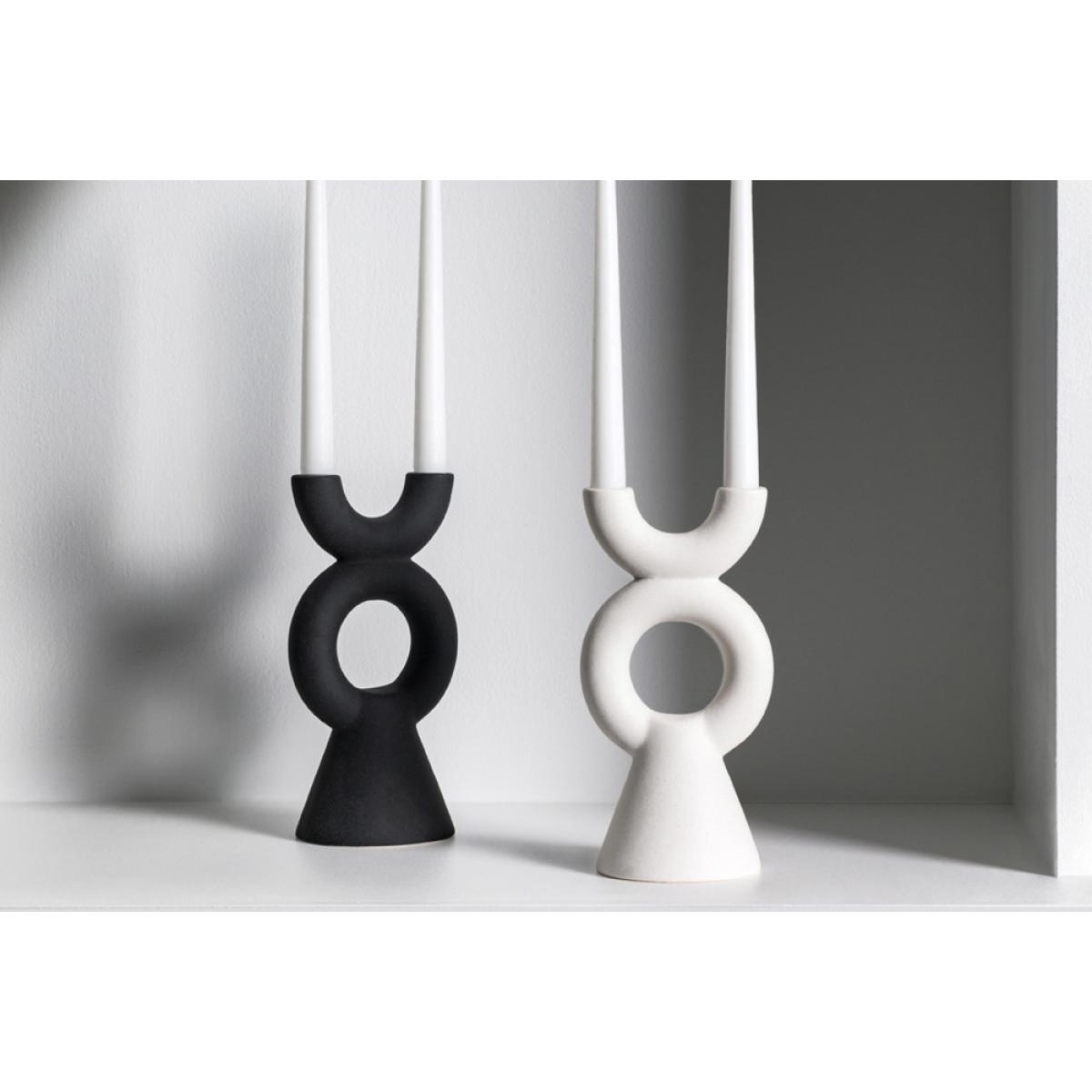 Add a bit of cool drama to your room with the super bold Pelion candlestick. Definitely a stand out candlestick the Pelion won't go unnoticed, its bold geometric shapes and sharp white glaze is designed to stand out. Hold 2 candles, candles not included.