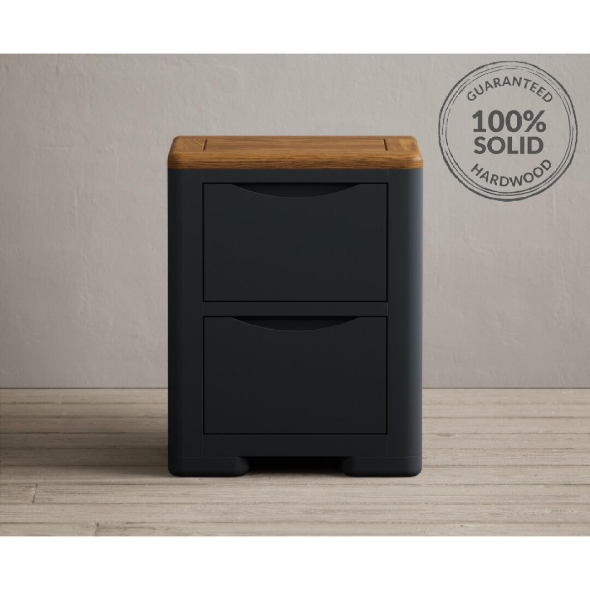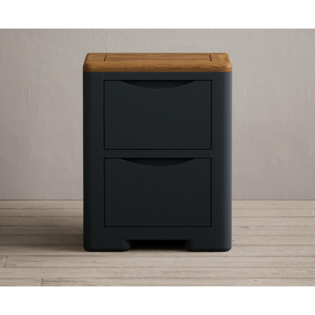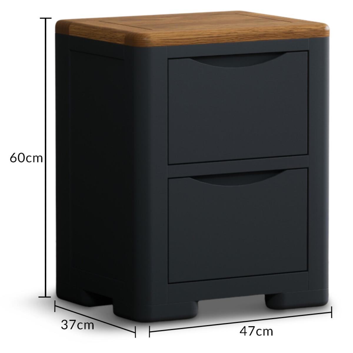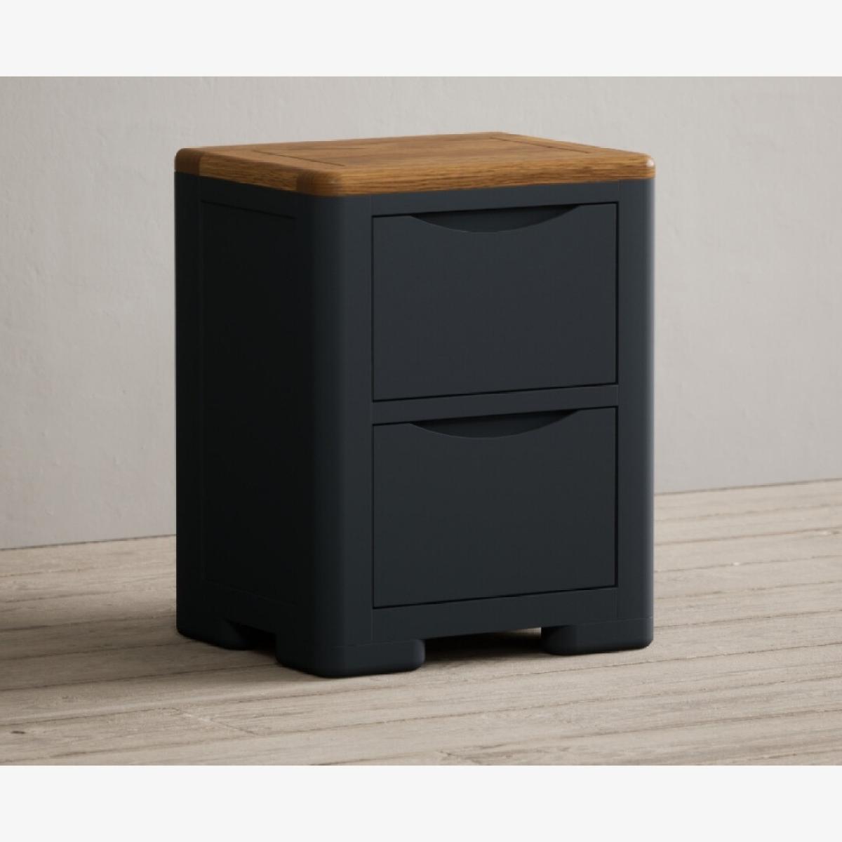 Pembridge Oak and Dark Blue Painted 2 Drawer Bedside Chest