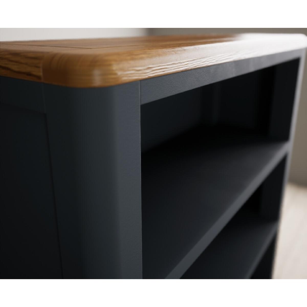 I’m a big fan of this oak-topped, dark blue bookcase because it marries a classic painted finish with a warm wood accent - it slots straight into both contemporary and traditional schemes. The deep blue tone works brilliantly against neutral walls or alongside soft greys, while the oak top adds a casual, lived-in feel. Styling tip: balance the open shelves by mixing books (stacked and upright) with decorative pieces like small sculptures or vases, and introduce a trailing plant to soften the lines. Use the lower cupboard to hide less attractive storage - I’d recommend wicker baskets or magazine files inside - so the display remains clean and uncluttered.