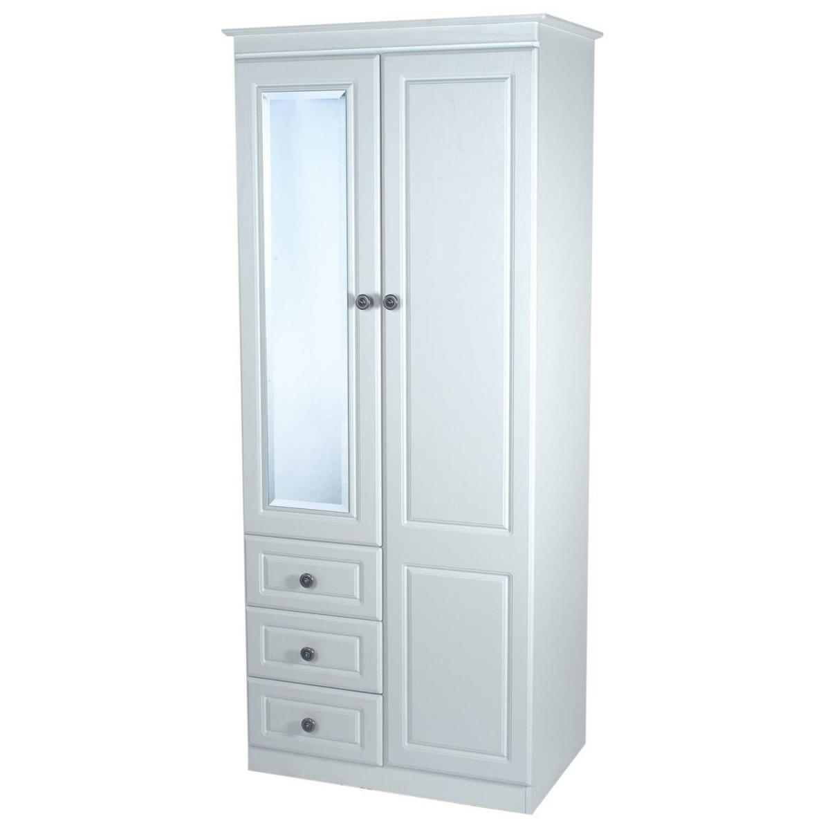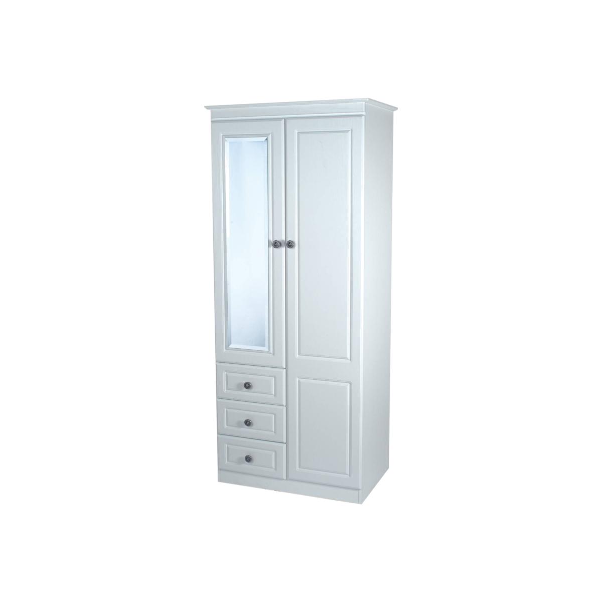 Using a combination of both style and practicality, this gorgeous Pembury Combi Mirror Wardrobe is beautifully crafted with an elegant matt finish and embossed decoration. Perfect for storing away your shirts and dresses on the hang rail, this wardrobe will protect your favourite garments from dust and dirt whilst keeping them organised and crease-free. The three spacious drawers with decorative handles and smooth runners offer extra storage space for bedding, shoes or even more clothes. The half length mirror that adorns one of the front doors not only looks incredibly chic but will allow you to check you look your best for your day at work or big night out. The modern and sleek design works perfectly with any home styling, with its calm colour offering a contemporary feel to the room, making it seem brighter and more spacious. It is ideal to place in bedrooms or guests rooms, creating a space saving solution for those with limited storage. Place this in any space and add a fresh style, turning your house into a stylish home you can be proud of.