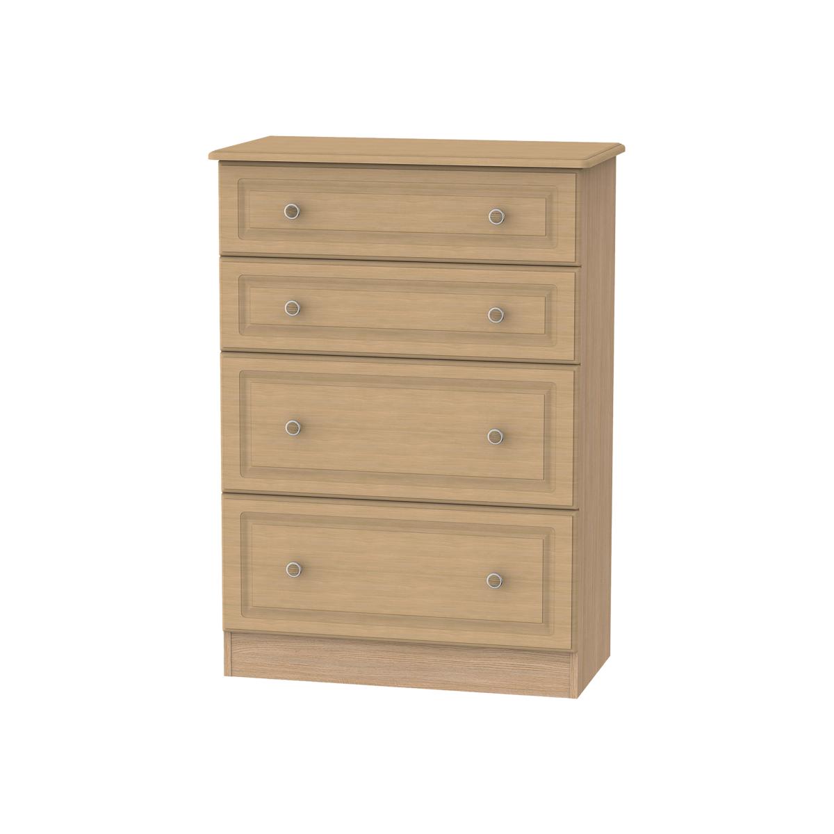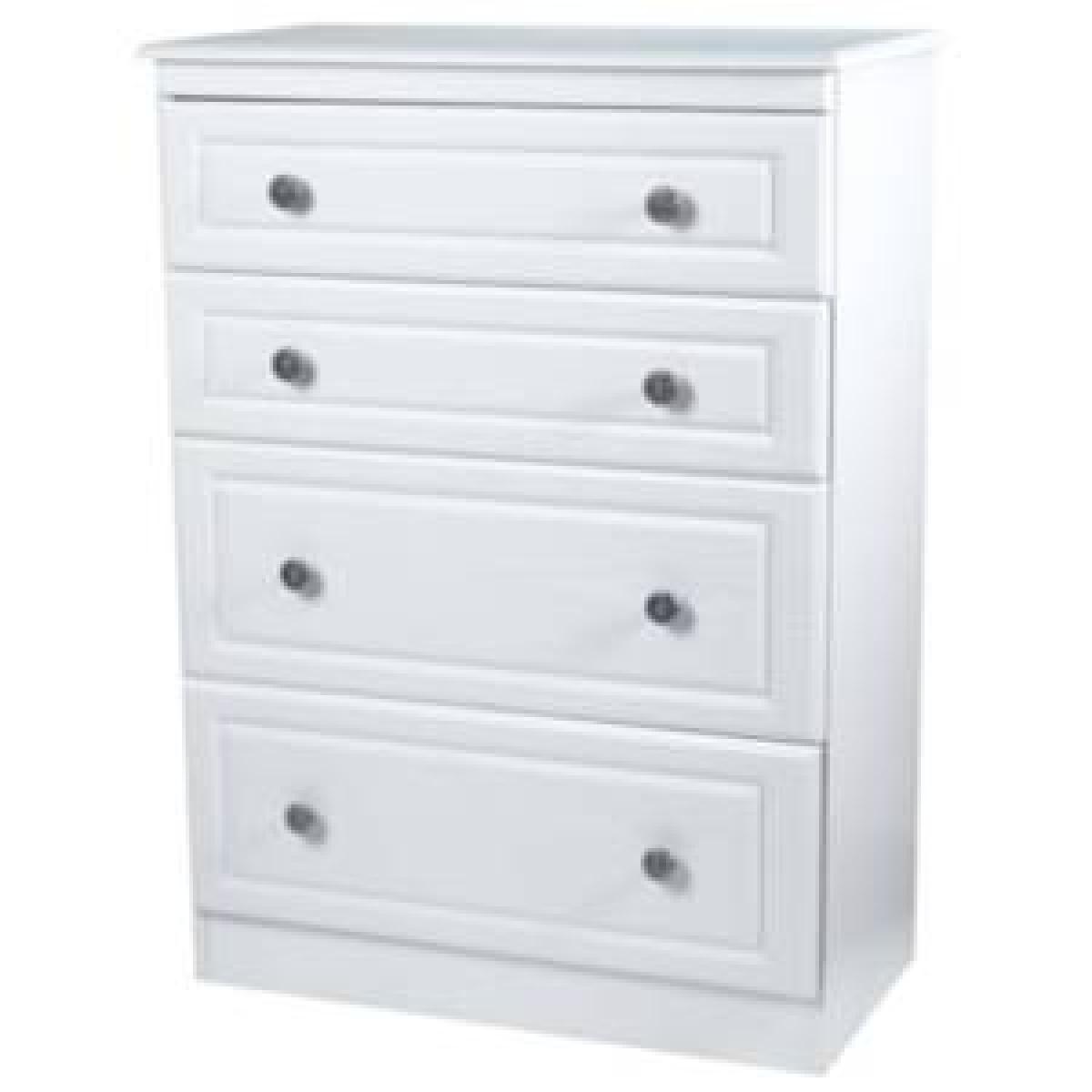 Combining style, elegance and practicality, the gorgeous Pembury Four Deep Drawer Chest is beautifully crafted with a matt finish and embossed decoration to give you a spacious storage solution for everyday use. The durable and versatile unit is perfect for housing your important paperwork and folders in your office or storing away clothing and bedding in your bedroom. Complete the top with a lamp, decorative ornaments or seasonal blooms - the choice is up to you!The simple drawers are sturdy and robust, gliding smoothly on metal runners. The detailed metal handles are rounded and decorative, adding to the sophisticated exterior and creating depth and character to the simple design. The minimalist style matches well with both modern and traditional interior decor, turning your house into a stylish home you can be proud of.