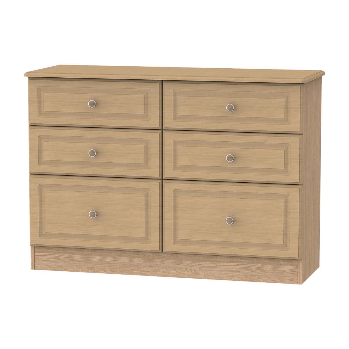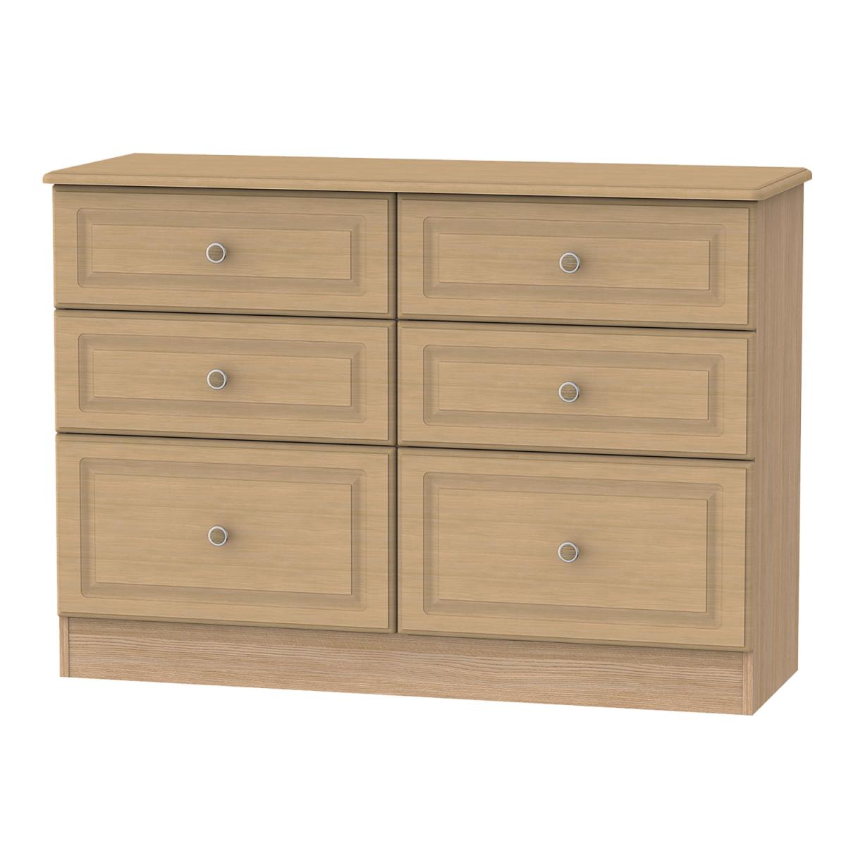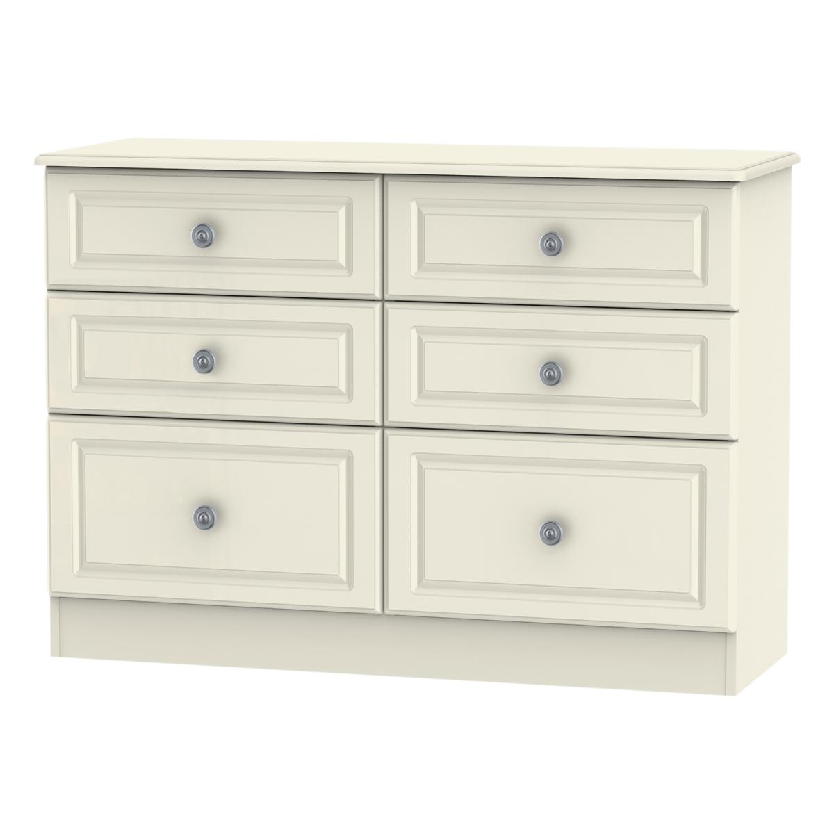 Combining style, elegance and practicality, the gorgeous Pembury Six Drawer Midi Chest is beautifully crafted with a matt finish and embossed decoration to give you a spacious storage solution for everyday use. The durable and versatile unit is perfect for housing your important paperwork and folders in your office, holding stationery in your craft room, or storing away clothing and bedding in the bedroom. Adorn the top with a lamp, decorative ornaments or seasonal blooms to complete the stunning appearance. The simple drawers are sturdy and robust, gliding smoothly on metal runners. The detailed metal handles are rounded and decorative, adding to the sophisticated exterior and creating depth and character to the simple design. The minimalist style matches well with both modern and traditional interior decor, turning your house into a stylish home you can be proud of.