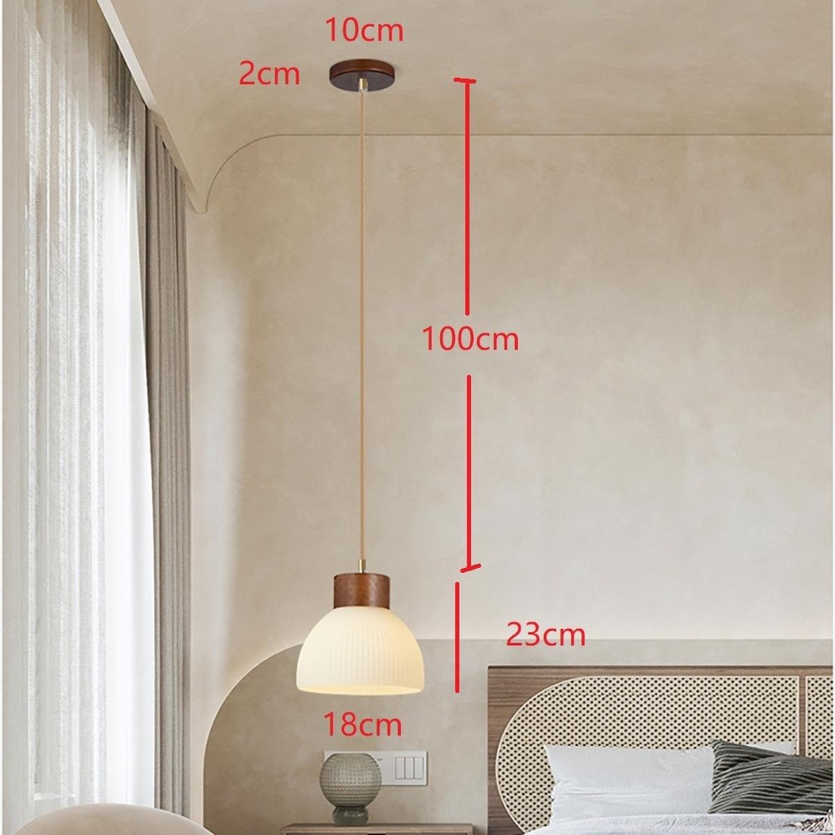 Overall Height: 125cm adjustable. Body Diameter: 18cm. Body Height: 23cm Base Diameter: 10cm. Base Height: 2cm. Colour:Walnut or Oak White Glass Lamp Shade. Rooms suitable for: Dinning table / Office ( Home study) / Kitchen