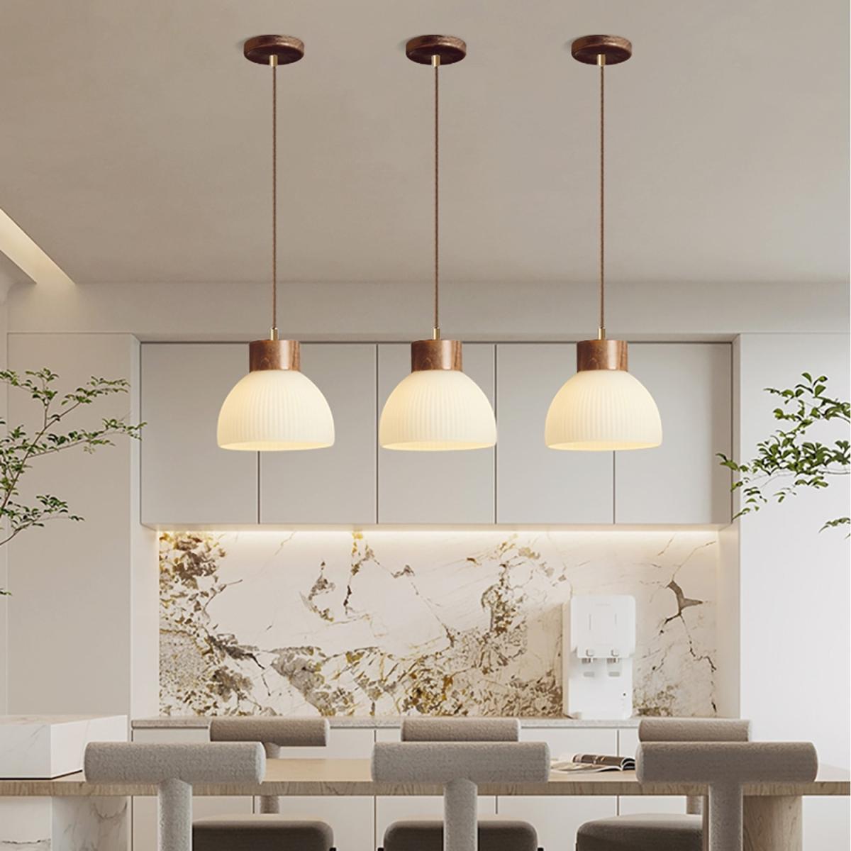 Pendant Ceiling Lamp Dinning Room Hall Way Wood Effect - Walnut