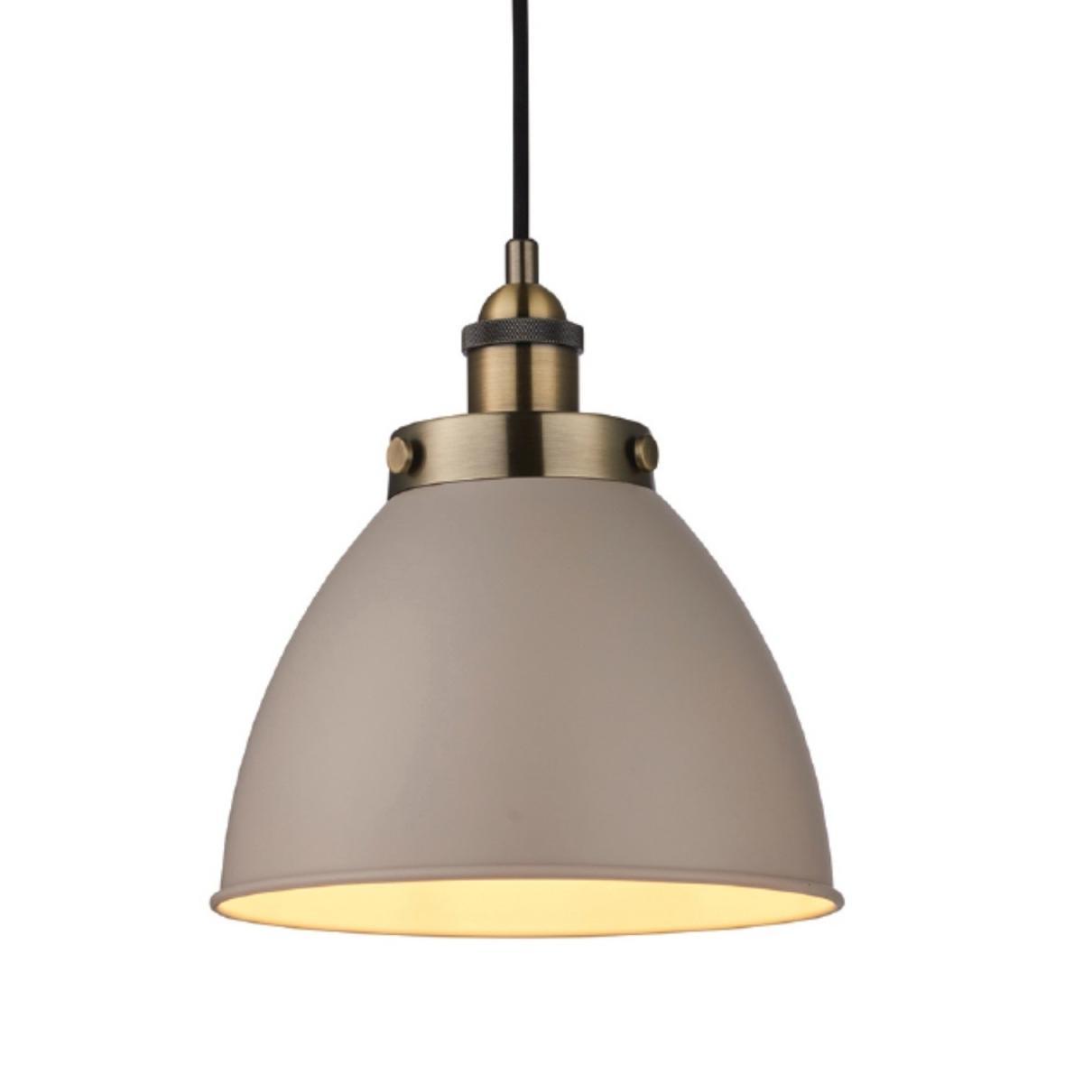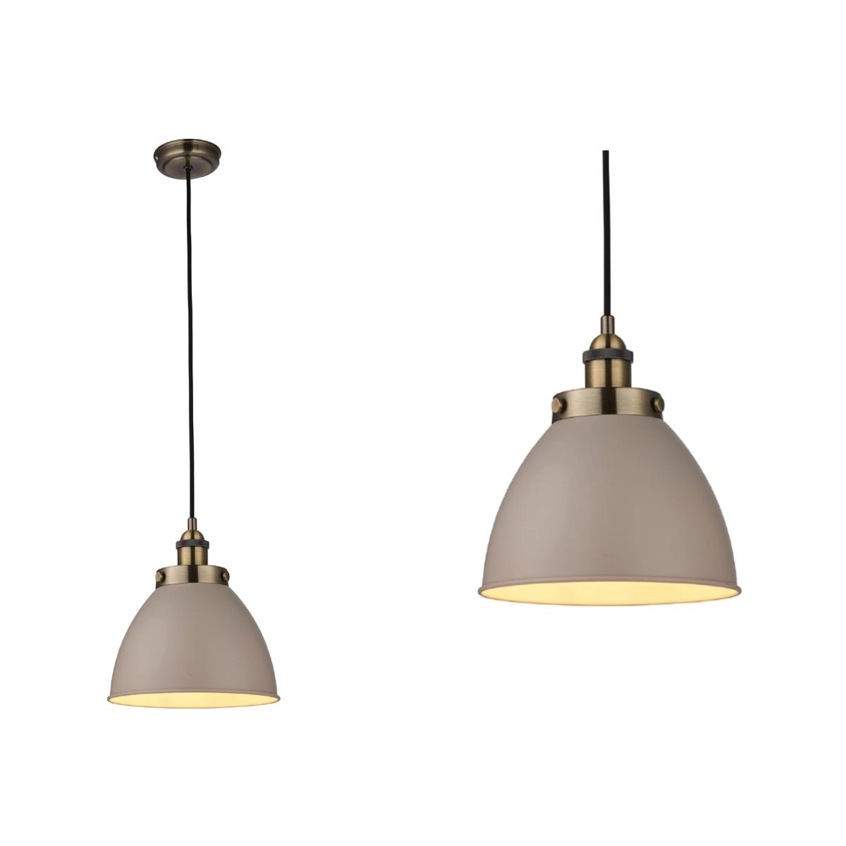 Dimensions W25 x H40 x D25 cm. The Franklin is an industrial style pendant finished in taupe and antique brass plate. With an adjustable height from 40-130cm making it an ideal light for both high and low ceilings. Features. Constructed from steel Taupe and antique brass finishLE D compatibleDimmable. Industrial design Assembly required..