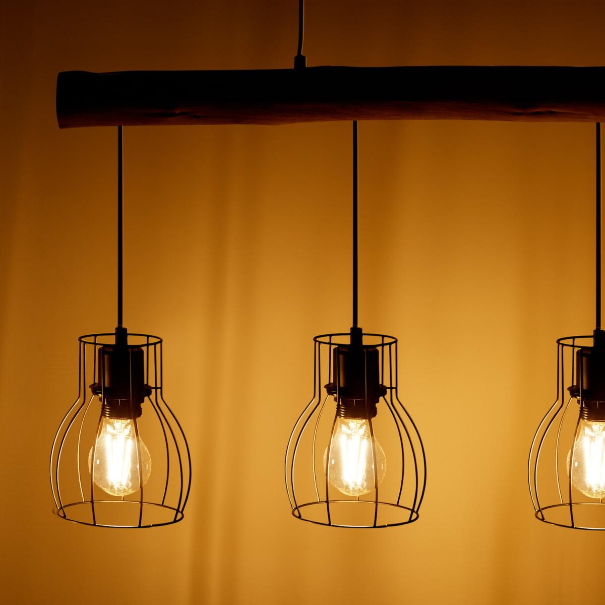 The Woody pendant light from tectake, brings rustic charm into your home. Combining the striking, natural wooden beam with black grid lampshades, this lamp is a true highlight. The four black lampshades create a warm ambience in any room and the linear arrangement of the lights ensures even illumination and is perfect for longer dining tables or kitchen counters. The lights are made from powder coated steel and solid wood, and the high-quality workmanship guarantees you a product that will look like new even after many years. With no glass pieces the pendant lamps will even be resistant to bumps and there is nothing to obstruct your LED lights. Make sure your home and outdoor ceiling lighting matches your personal aesthetic. With the flexible black cable, you can adjust the height of the pendant light to the ceiling height of your dining room, bathroom or outdoor shed. Make sure your new ceiling lamps are always providing the optimal light, whether you choose LED bulbs in the dining area, or old fashioned glass bulbs over the kitchen island, or as atmospheric lighting in the living room. Installation is quick, as the mounting materials come as standard. Choose the Woody pendant light from tectake for a successful combination of rustic charm and modernity.