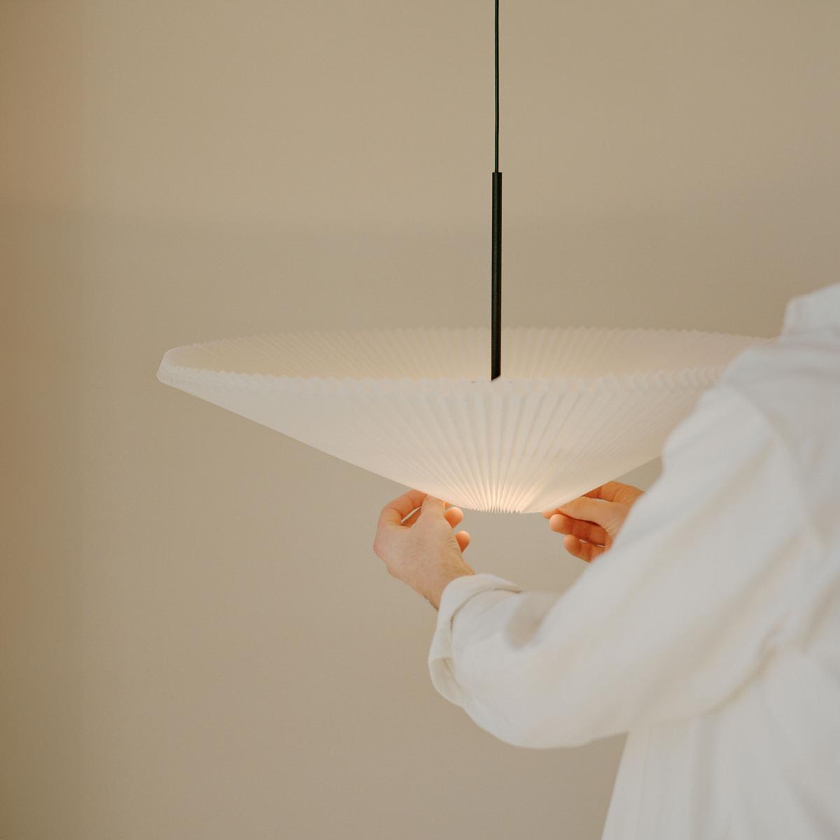 Flexible lighting for modern living... The Nebra Pendant harmoniously combines classic design with an interactive mechanism that allows you to easily transform the shape of the lampshade. As if dancing like a tutu, Nebra's pleated Lampshade moves to the rhythm of your day. It evolves and adapts to your different lighting needs from morning to night.