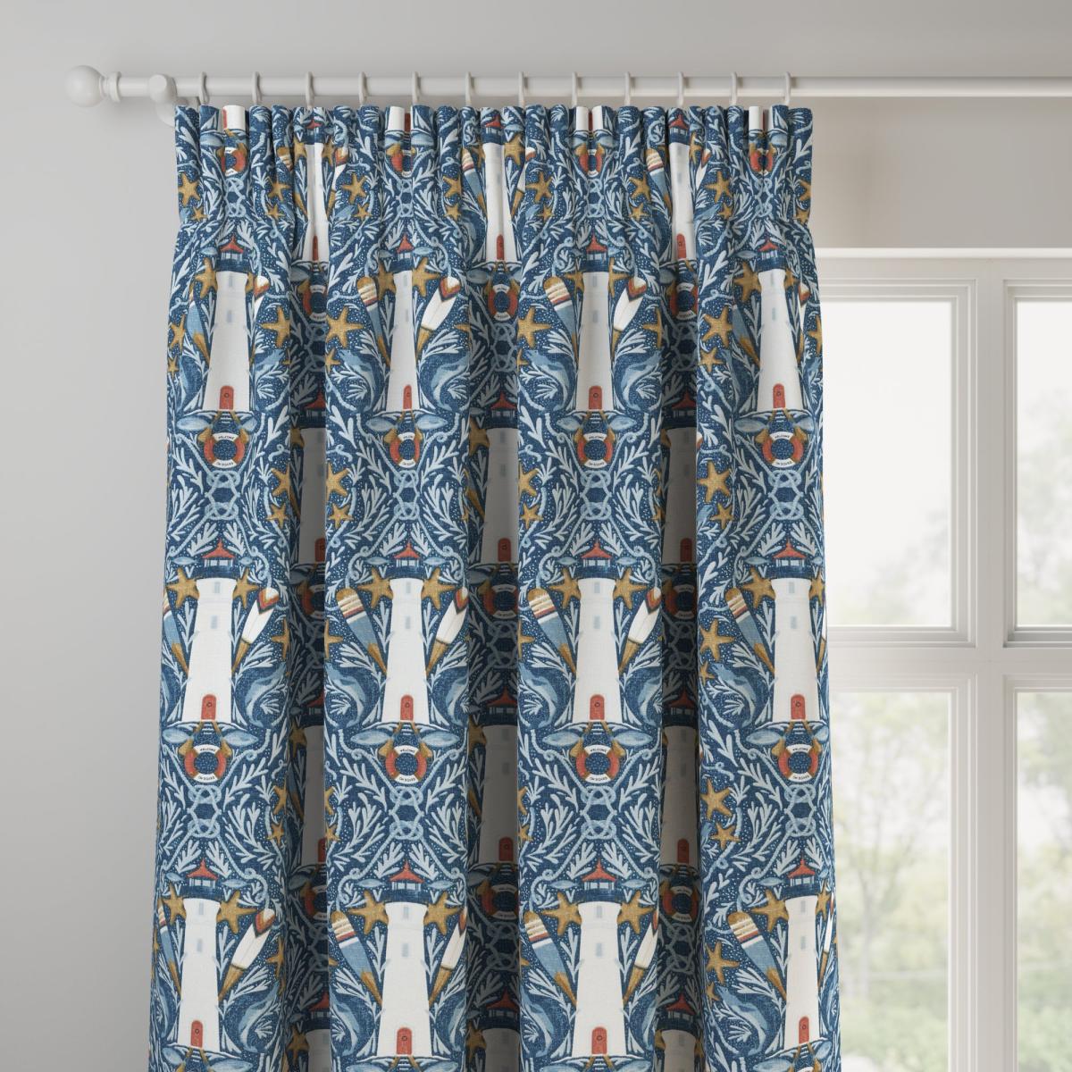 Selection of header types available Made to your individual measurements Unique and bold nautical design Made from 100% cotton Coordinating items available to purchase separately These Made to Measure curtains feature a selection of header types tailored to your preferences. Indulge in the luxury of customisation as each curtain is expertly made to your individual measurements, ensuring a perfect fit for your windows. The unique Pendeen sea design adds a touch of quirkiness and fun to your home, while the use of high quality 100% cotton ensures both durability and a luxurious feel. Why not shop the coordinating Pendeen Made to Measure and Made to Order items available to purchase separately, for a complete look? Our Web Exclusive Coastal range features a variety of unique designs, across curtains, tiebacks, cushion covers and more, all made on a 100% cotton fabric base. The 100% natural fibres like cotton are kinder to the environment, as well as to our skin, being naturally hypoallergenic, meaning they are ideal for sensitive and allergy-prone skin, as well as having unique anti-bacterial qualities. You can feel confident that our Coastal range will be gentle to the environment, and to those who may sit close. Please note: If your measured width is over 124cm your curtains will come with a fabric join to provide the full width required.