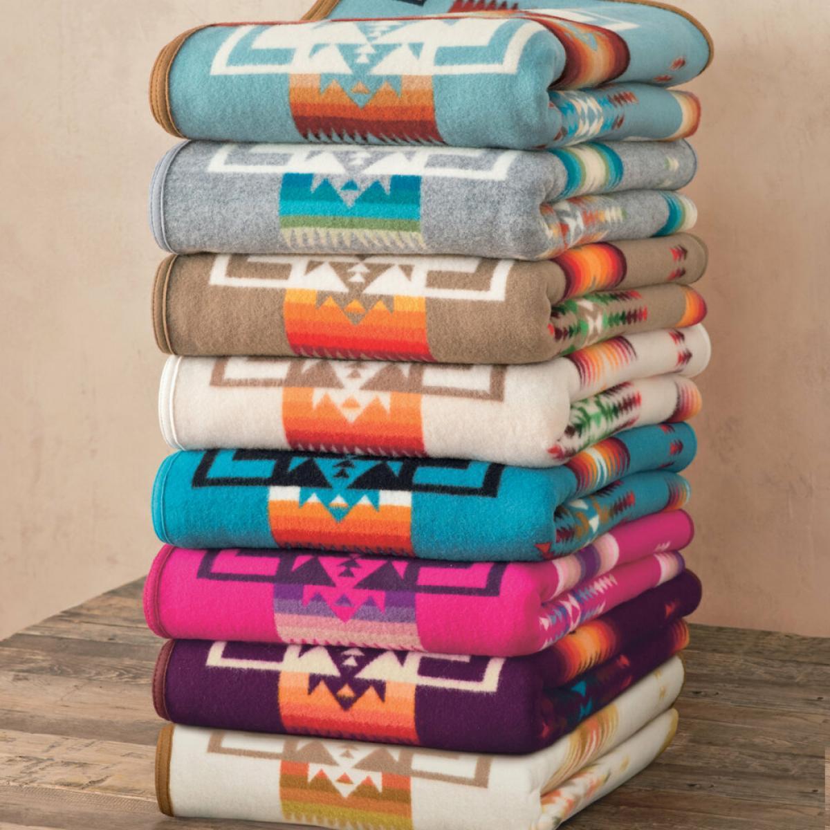 Add historical design to your home with this Chief Joseph Blanket from Pendleton. Designed in the early 1920s, the Chief Joseph design continues to be one of Pendleton’s most popular blankets as it commemorates the heroism of one of the Northwest’s greatest Nez Perce warriors, Chief Joseph. Featuring various arrowheads to symbolise bravery, this blanket is suitable for dry cleaning only and makes a bold statement in any space.