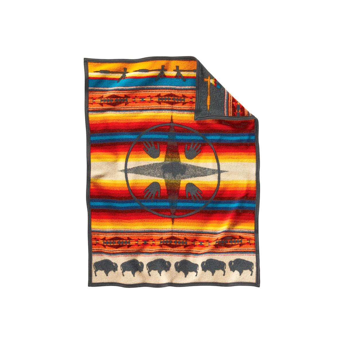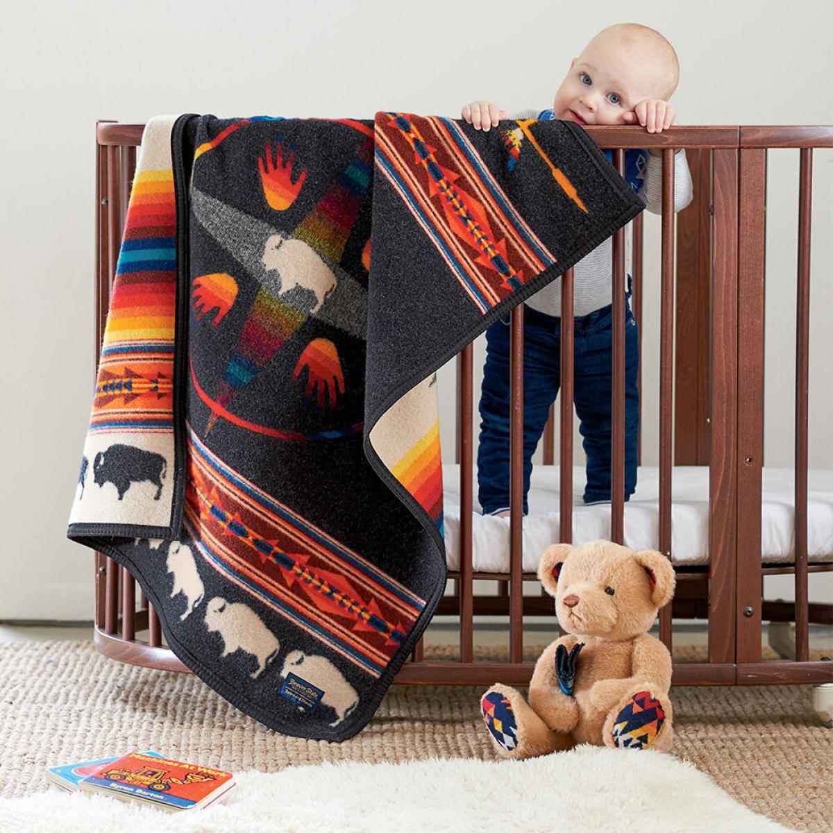 Complete your little one’s space with this Big Medicine Oxford Muchacho blanket from Pendleton. Woven in Pendleton's traditional American mills, this blanket is made from a pure virgin wool blend and features a Native American inspired design. Ideal as a decorative piece or as a cosy layer for chilly nights.