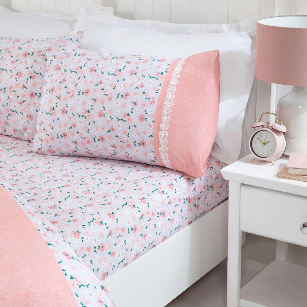 This traditional, pretty design features delicate springtime flowers and vintage lace to create a classic duvet cover set. This bedding is great for adding a fresh feel to your bedroom.