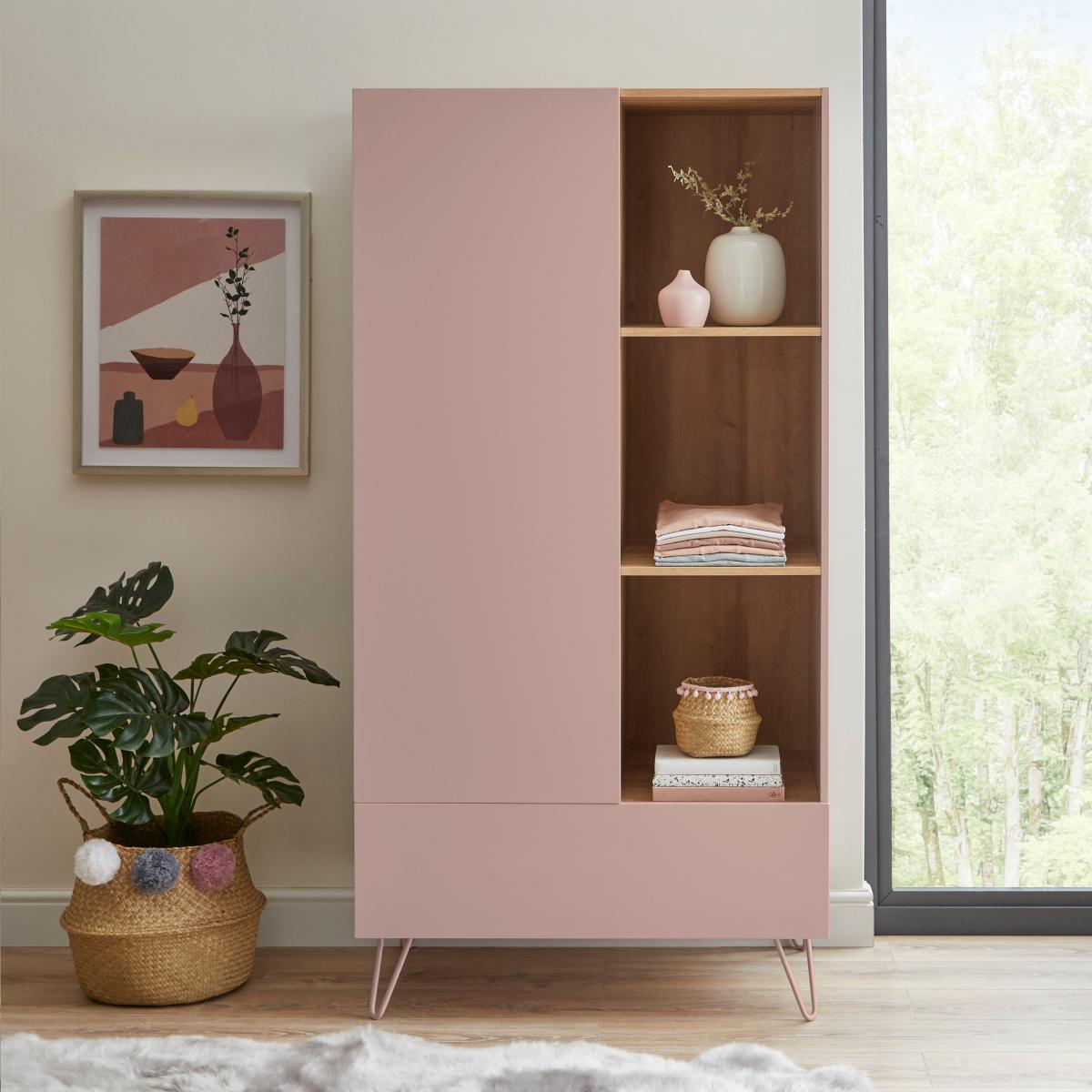 I love this pink wardrobe because of its soft, contemporary colour that can add a gentle touch to both modern and vintage interiors. It works particularly well in bedrooms with muted or pastel palettes, or as a statement piece in minimalist spaces. For styling tips, consider pairing it with brass or matte black hardware to add contrast, and keep accessories and clutter simple to let the colour stand out. Its clean lines and light tone make it versatile, so it can complement cosy, Scandi-inspired schemes or more playful, eclectic settings. It’s practical for storing clothes neatly, while the blush hue adds a fresh, uplifting vibe to any room.