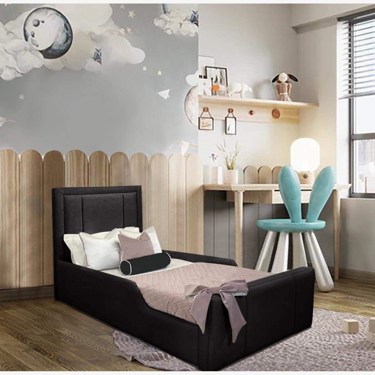 Penelope Kids Bed Plush Velvet with Safety Siderails - Black / Single