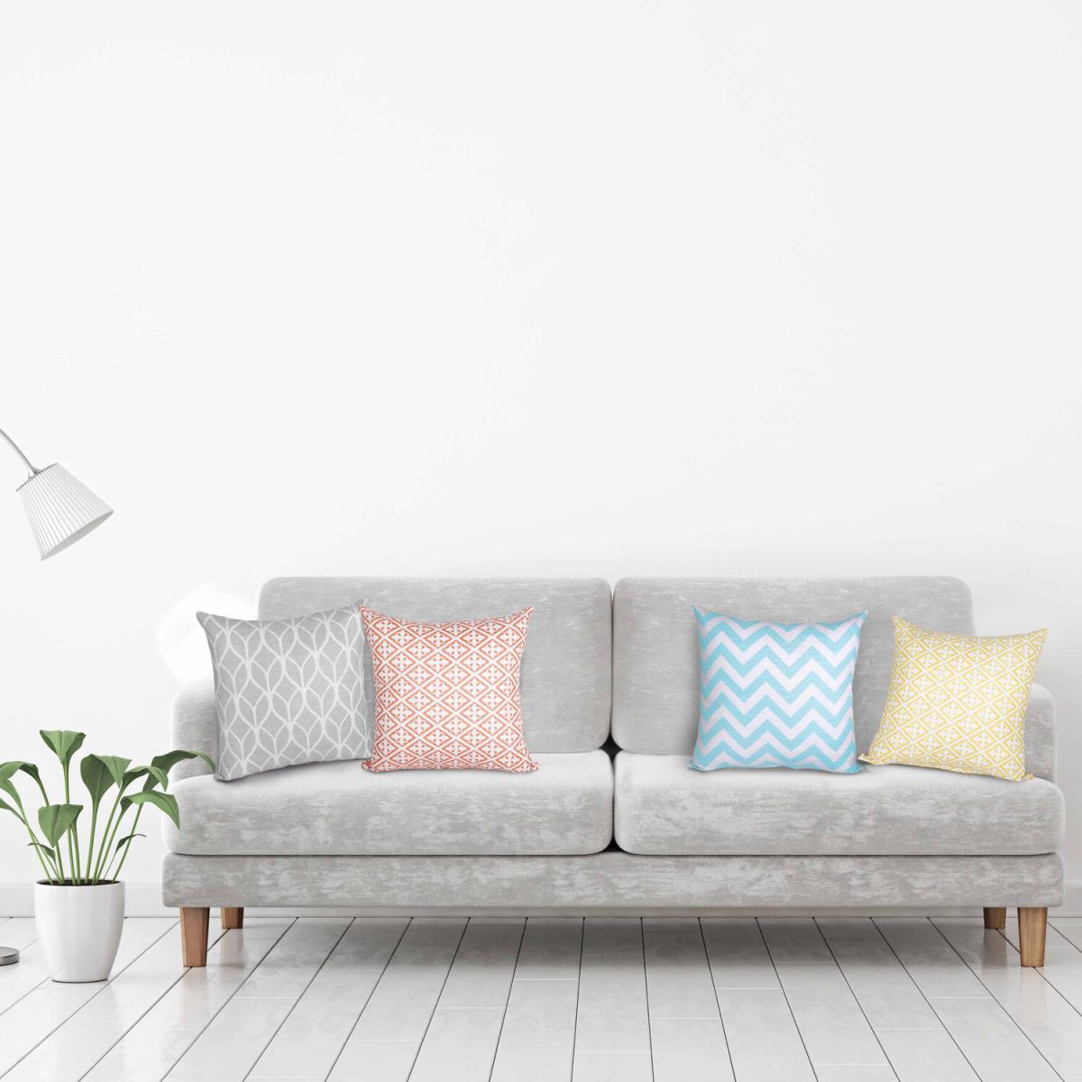 Decorative square cushion covers in a coordinated design. Made from superior quality cotton at the lowest possible price, they are super soft to the touch but also incredibly durable, even after many washes. The timeless geometric patterns will suit any room and are available in blue, coral, grey, yellow or an assorted pack of each colour. Perfect to decorate your home and add a touch of stylish fashion to your sofa, bedroom, living room or office.