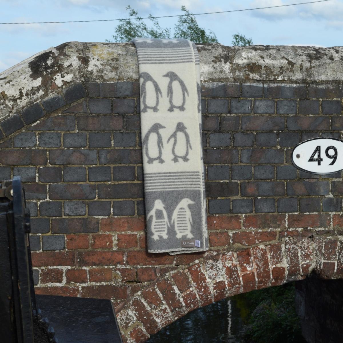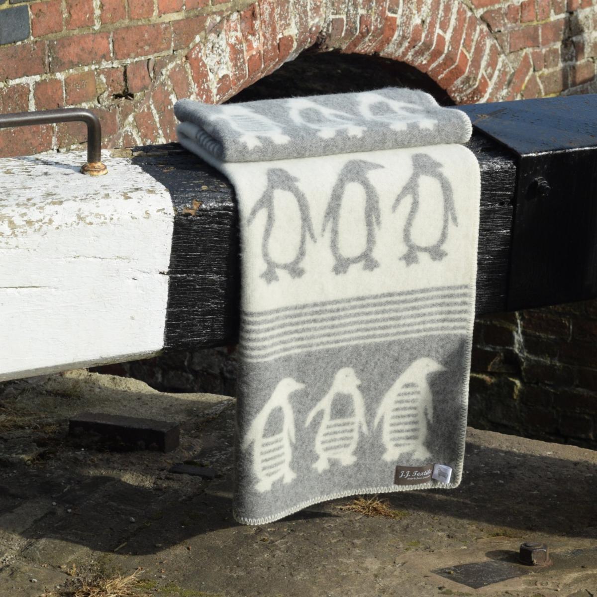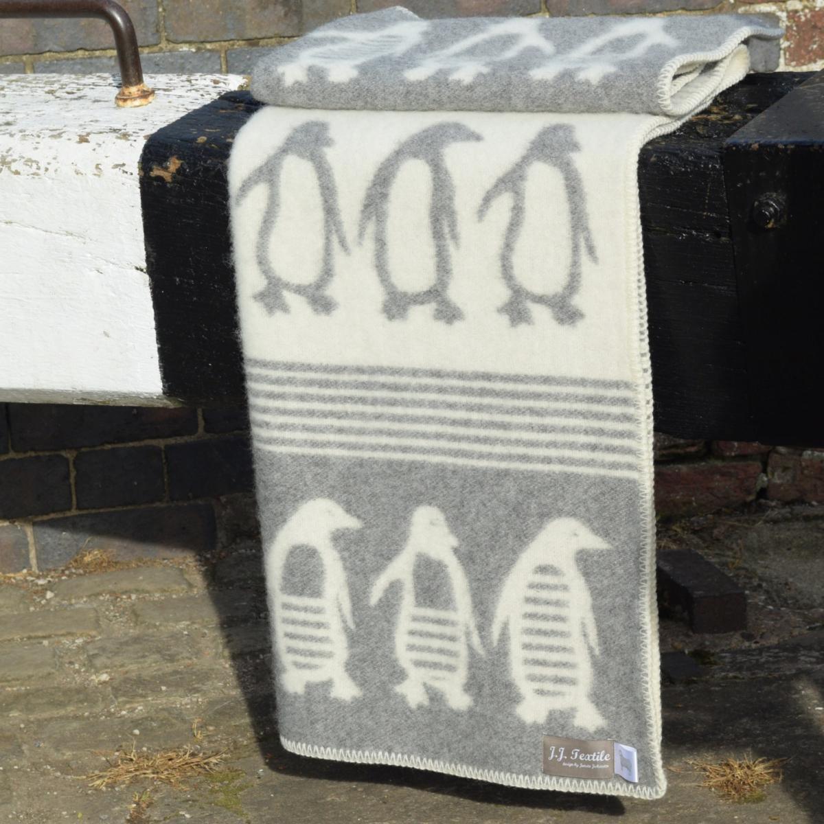 It’s the march of the penguins! Such a fun design, this small blanket is in a neutral soft grey and off-white colour scheme. It can’t help but make you smile and want to snuggle up. Woven from 80% wool and 20% cotton, this, lap-sized, blanket is easy to take out with you or have draped on the back of the armchair ready for a sit-down and relax. Measuring 90 x 130cm (35 x 51in) the blanket is also machine washable. Happy living with friendly designs!