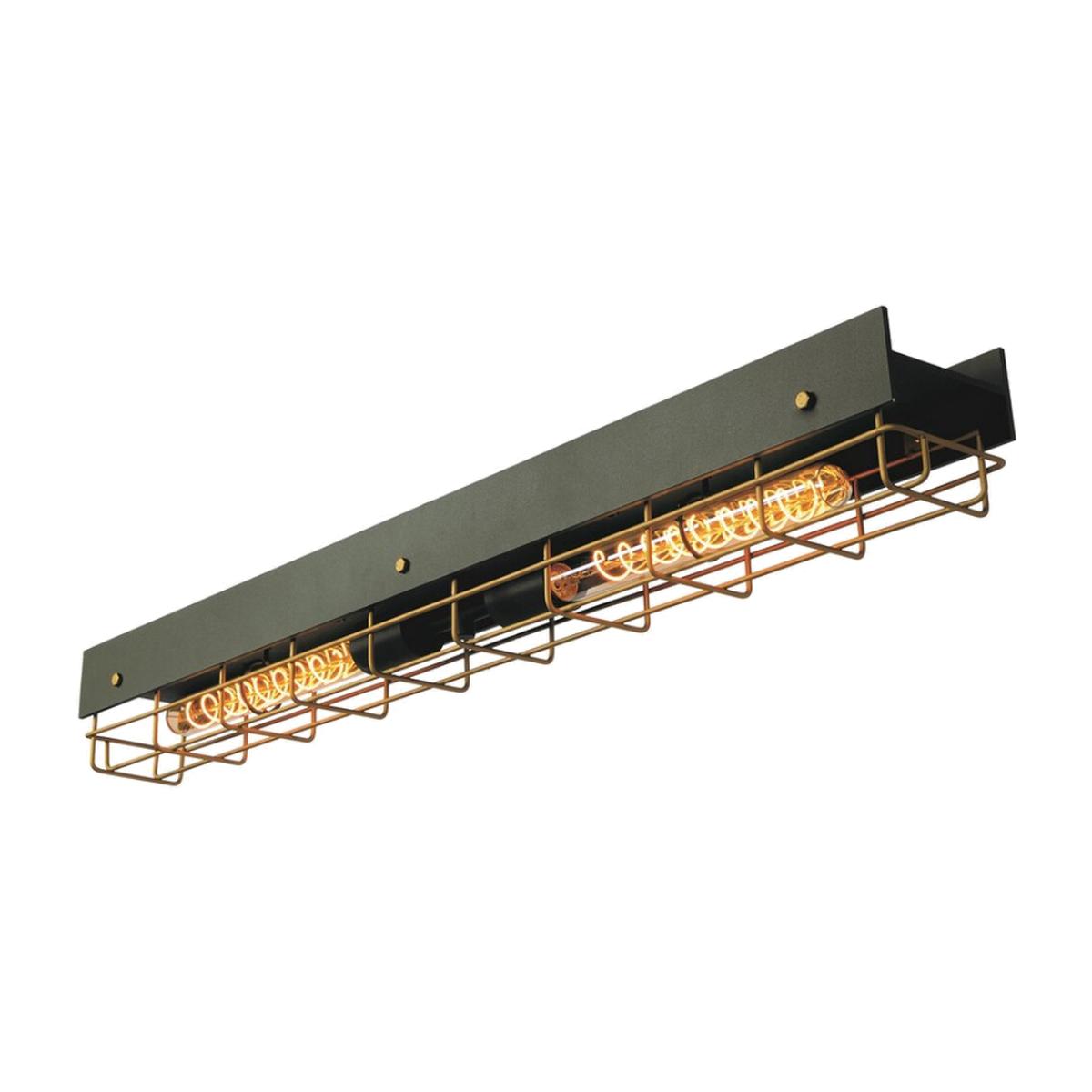 An industrial and playful ceiling light Let us introduce you to Peniquet. This light is made of high-end steel and has a sleek rectangle shape. The two light sources are visible through a stylish grid. For an optimal result, you combine this beautiful ceiling light with two tubular LED filament light bulbs. Thanks to its design and 93 centimetre width, it is an eye-catcher in your interior. Connect Peniguet to a dimmer to give it a softer edge and add cosiness to your home.