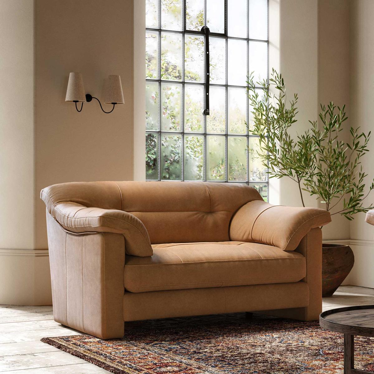 I love how this cosy brown armchair combines generous proportions with soft, patinating leather - perfect for grounding both contemporary and loft-style interiors. It works equally well in a snug living room corner or home office, especially when paired with a low-profile side table and a textured rug to balance its bulk. For styling, add a couple of patterned cushions and a woven throw to introduce colour and contrast, then finish with a slim metal floor lamp to create a relaxed reading spot.