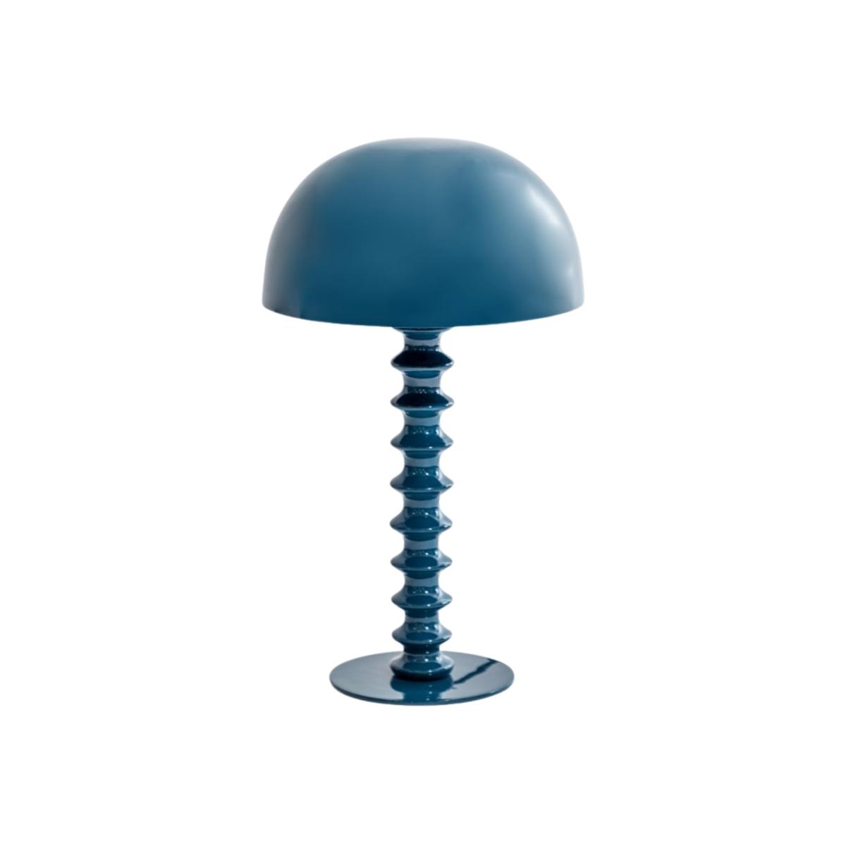 This striking 50cm table lamp pairs a sculptural twisted stem with a dome shade in deep indigo blue. The playful spiral detail and clean lines merge retro charm with contemporary style.