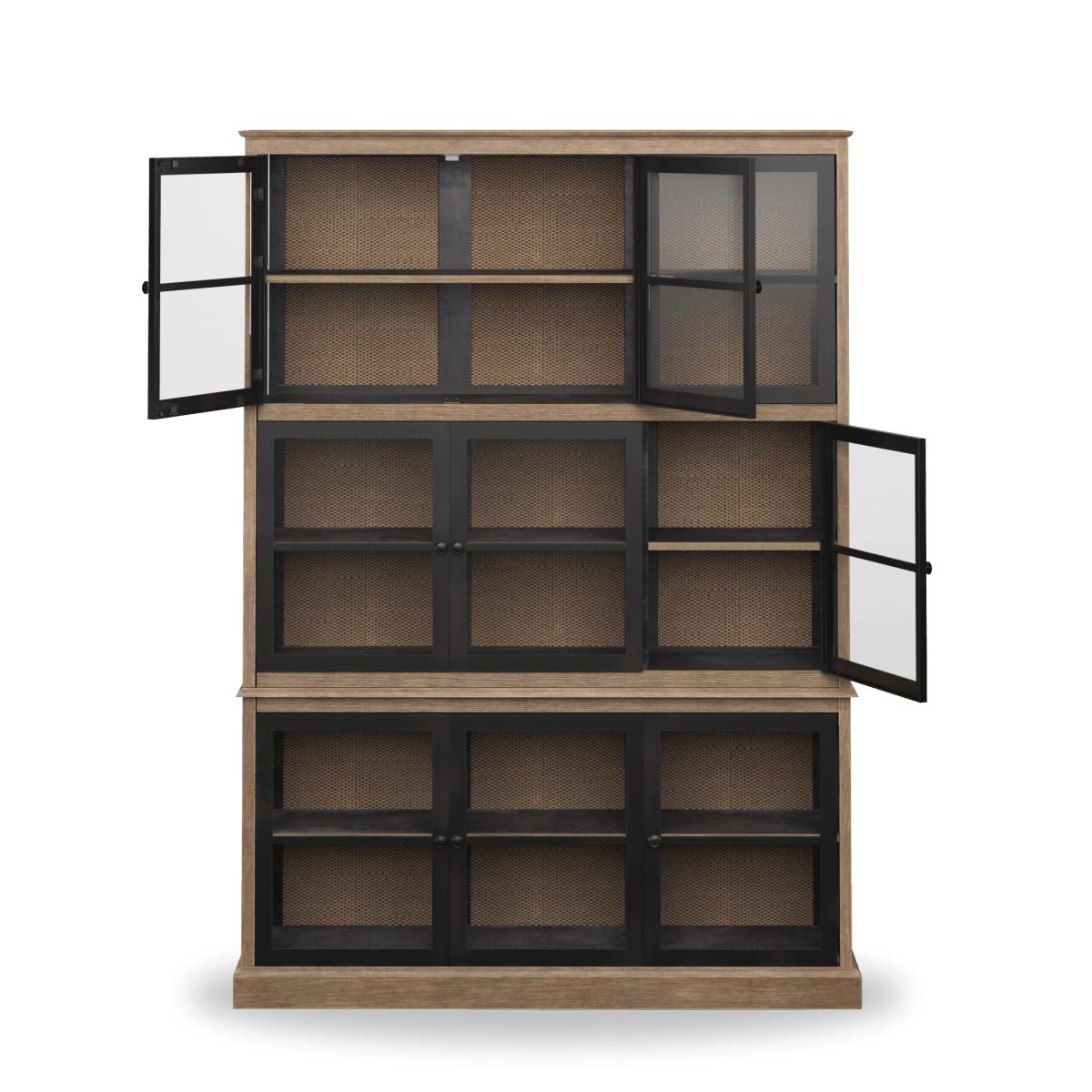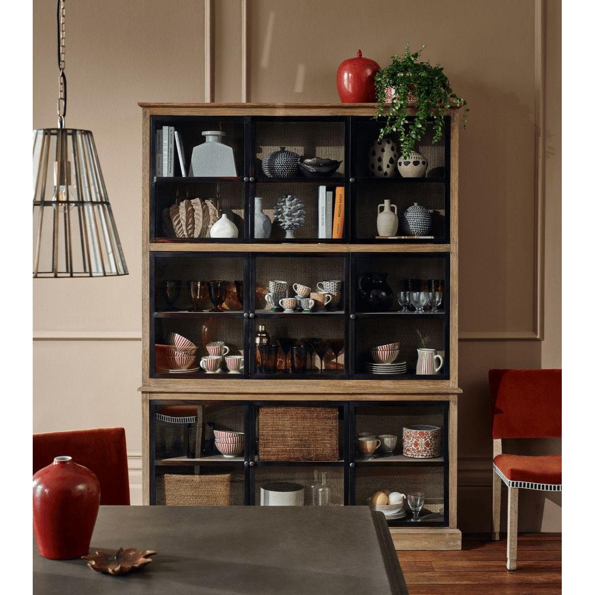 Creating a balance between the traditional and the modern, our Pentomino Display Cabinet borrows from typical London architecture with its bronze-framed Crittall-style windows. Behind its façade sit rattan panels that line the back of the cabinet for added texture. This piece, handmade from bayur wood, is deep enough to fit our large charger plates. Due to the natural materials used, each piece will have individual characteristics.
