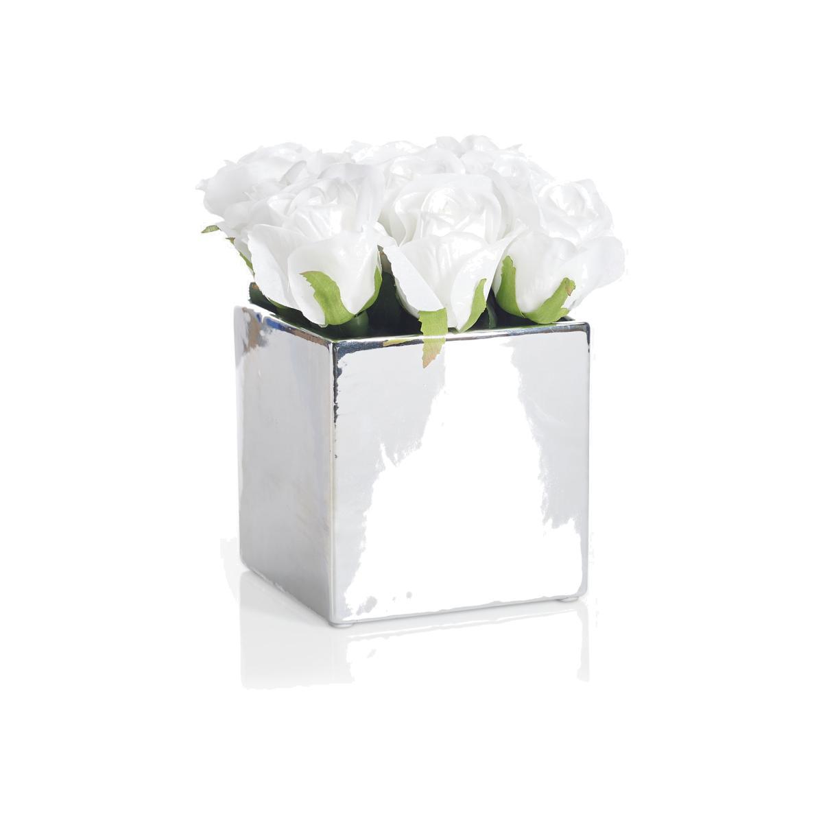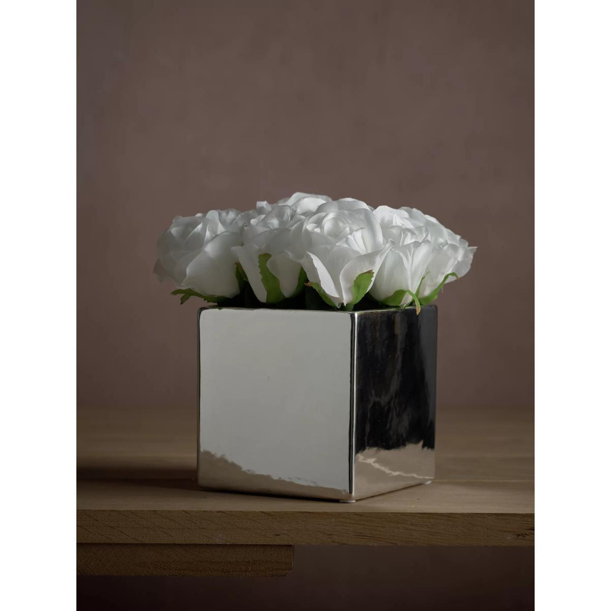 I love this set of white roses in the large contemporary cube for its clean, modern aesthetic that effortlessly elevates any space. It works particularly well in minimalist or contemporary interiors, where its sleek metallic finish and understated beauty can add a touch of elegance without overpowering the surroundings. For styling tips, consider placing it on a sleek coffee table or console to create a striking centrepiece, or use it on a shelf to add texture and softness to a monochrome scheme. Because they’re artificial, they’re practical for high-traffic areas or spots where real flowers might wilt quickly, giving you a beautiful, low-maintenance solution that remains fresh-looking over time.