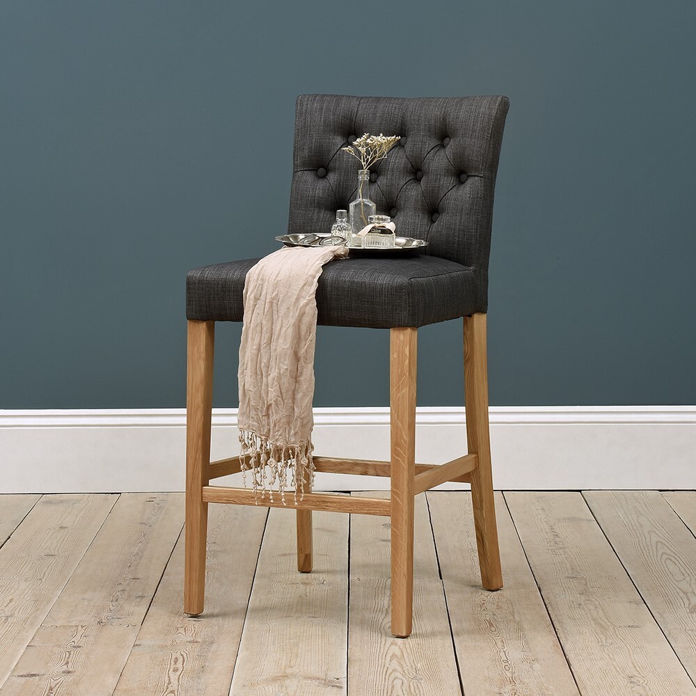 The perfect pew for your kitchen or dining room, our neutral Peony Buttoned Bar Stool will add a touch of elegance. Wonderfully comfy with a padded seat and cushioned back, it's the ideal spot to enjoy a morning cuppa or lazy weekend breakfast. A timeless design boasting beautiful light oak legs, it's also available in a soft grey linen.